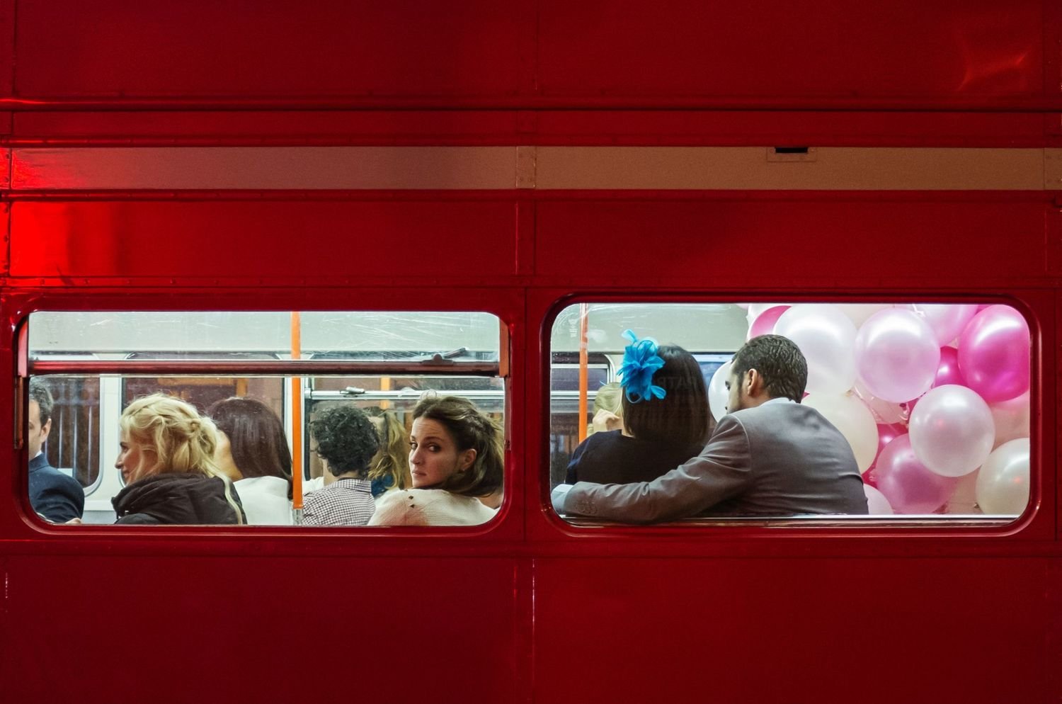 As an example, a few years ago I took a picture of a red bus in London at night. It was late, cold and grim. I was on my way back home, feeling tired and a bit disappointed, as I had spent several hours shooting in the cold street. Suddenly, out of nowhere, a red double-decker bus full of light, balloons and celebrations appeared. I immediately took a few shots and instinctively stepped towards the bus to better see the people’s faces. In that moment, the girl on the bus turned her head and looked outside. I will never know what her mood was and what she was thinking about. I can imagine many stories about that bus, but what I felt personally during those seconds was hope. A notion of tangible happiness.