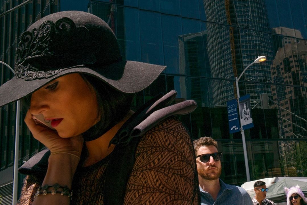 My protagonist is always the street itself, where the only things that meet your expectations are the fine details of the surrounding environment, like a geometry of light, a reflection, a facial expression tackled by wind, a pose framed by color—in other words, a sentiment.