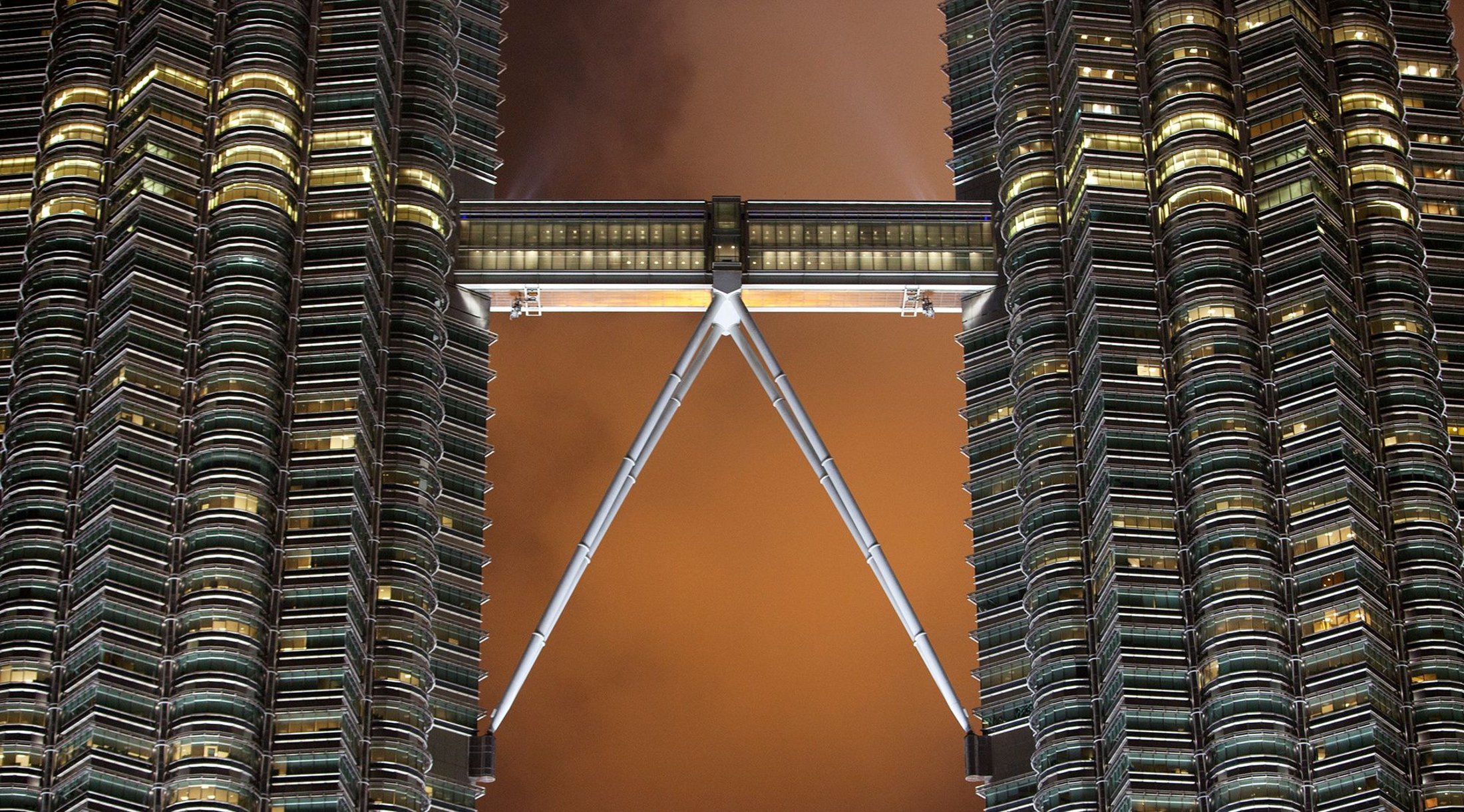 Petronas, Kuala Lumpur, Malaysia. Currently the world's tallest twin buildings, the Petronas Tower skyscrapers also boast the world's highest two-level bridge. © Ryan Koopmans