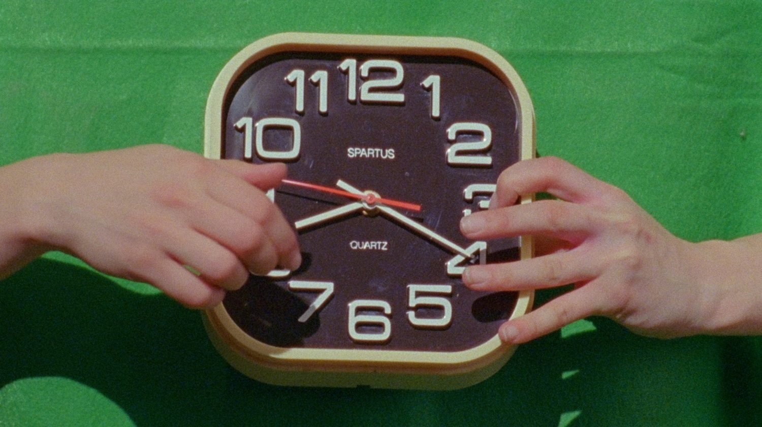 The final film of the trilogy, Red Film, is described by Cwynar as continuing her critique of captialism’s persuasive, constant pressure to consume and conform, and takes a more personal vantage point than the previous two—with the artist herself featuring in the images this time. Hanging upside down in front of the camera, the blood rushes to Cwynar’s head, bulging her eyes and reddening her skin to the point of bursting. This is a reference to Marilyn Monroe, the artist explains, whose X-rays were sold at auction after her death, proving that even her insides had become a commodity at that point. Later, photographs of scarlett lips and production lines at cosmetics factories highlight the gendering of the color red.