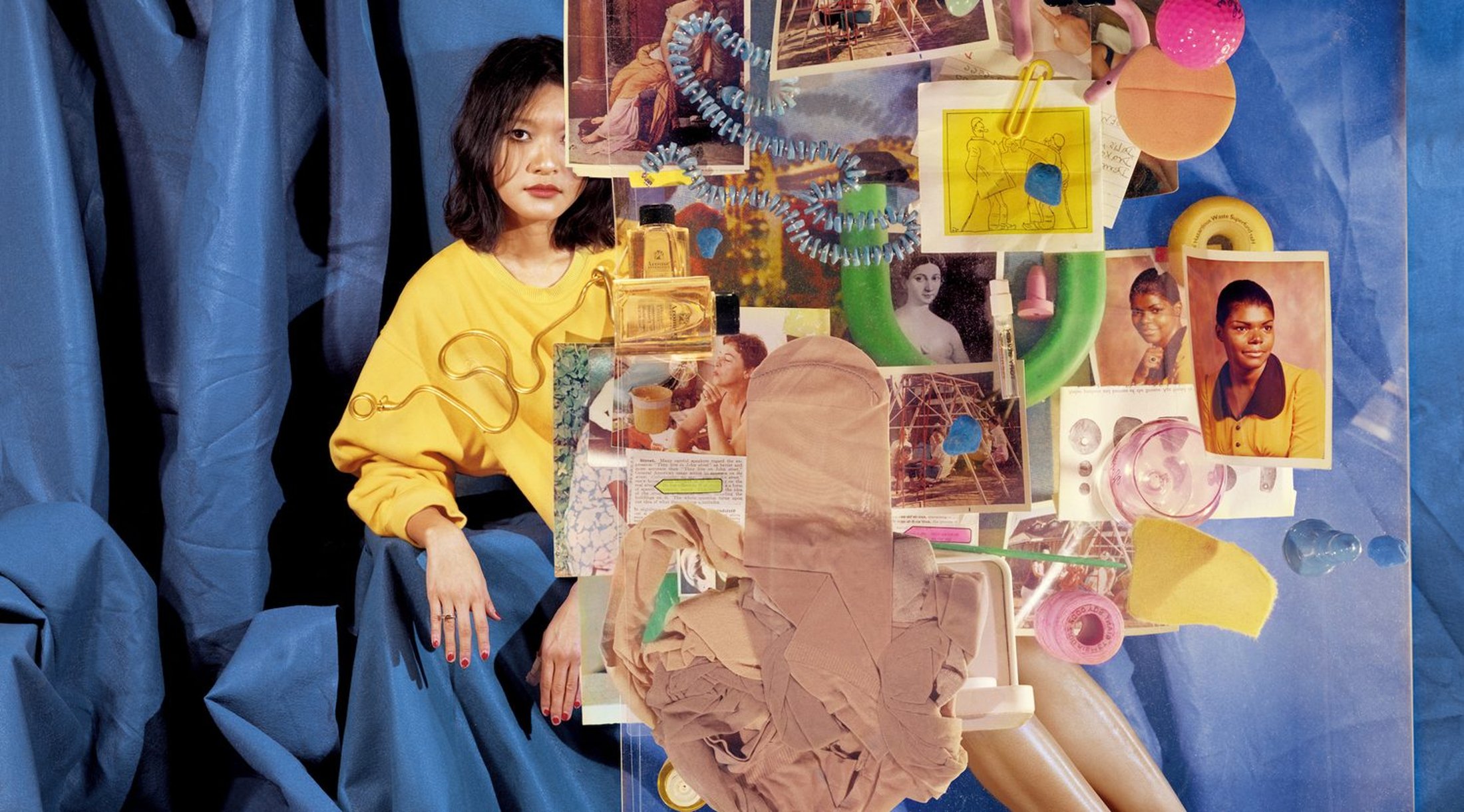 Leafing through this photobook is a giddy experience, uneasy even, almost like being on a ride at the funfair. Perhaps best described as a frenetic, visual helter-skelter through consumer-driven image culture, its multilayered, saturated images arrive to the eye in short, intense bursts. Rose Bouthillier, who is in conversation with Cwynar at the beginning of the book, is of a similar opinion, saying that the pace at which the book throws information in our direction feels almost “sickening.” In return, Cwynar explains she has a hypothetical viewer in mind when making work—one “who needs more and more stimulation or I will lose their attention.” As a result, she says, she is always, “trying to strike a balance between too much, stuffing in as much content as I possibly can, and then dialing it back just when I might have lost a viewer.” That’s exactly how this book feels. Stuffed to the brim.
