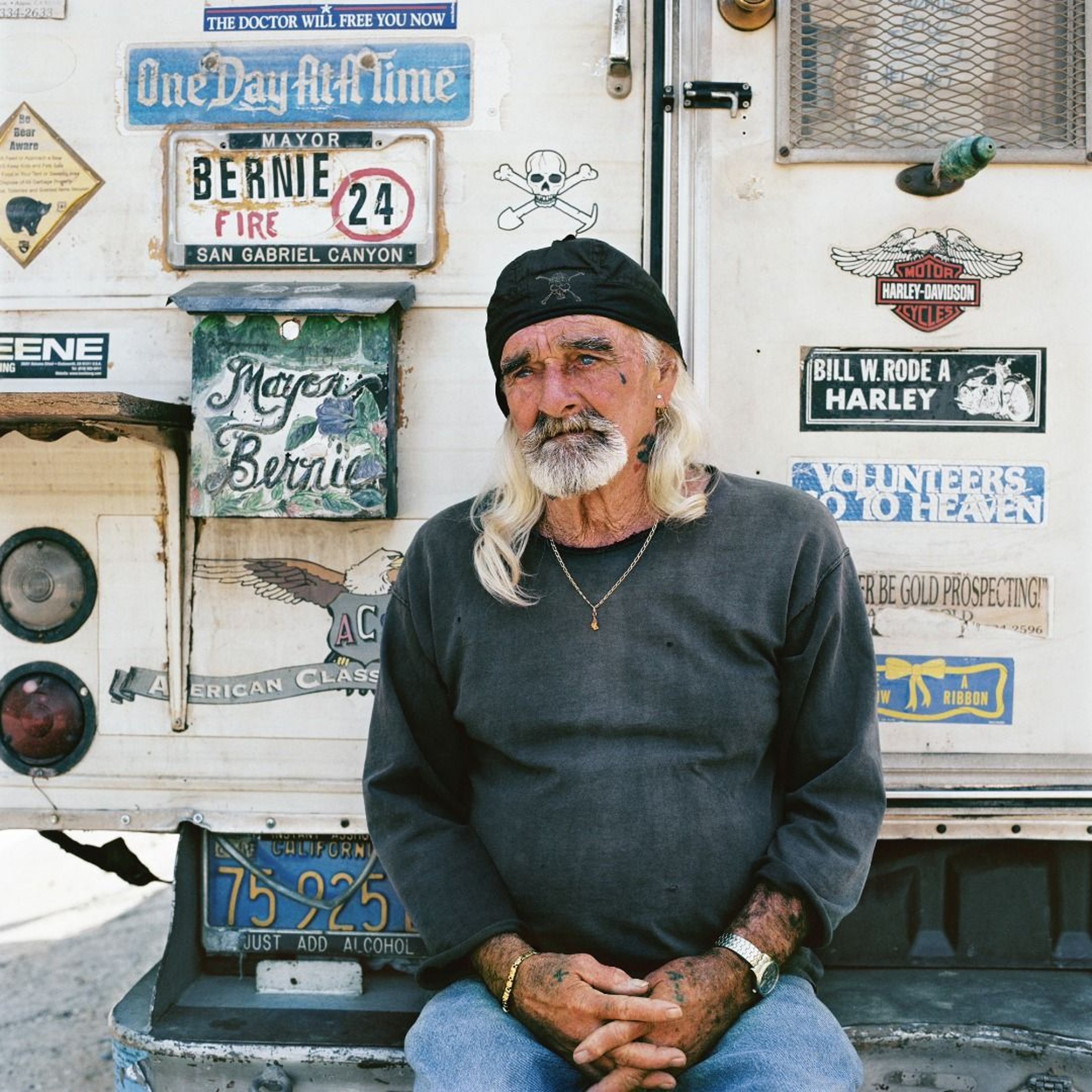 The New Forty-Niners juxtaposes the elemental rugged life of these passionate and obsessive individuals with gold souvenir shops, bars and motels celebrating the mining history of California, The Golden State.