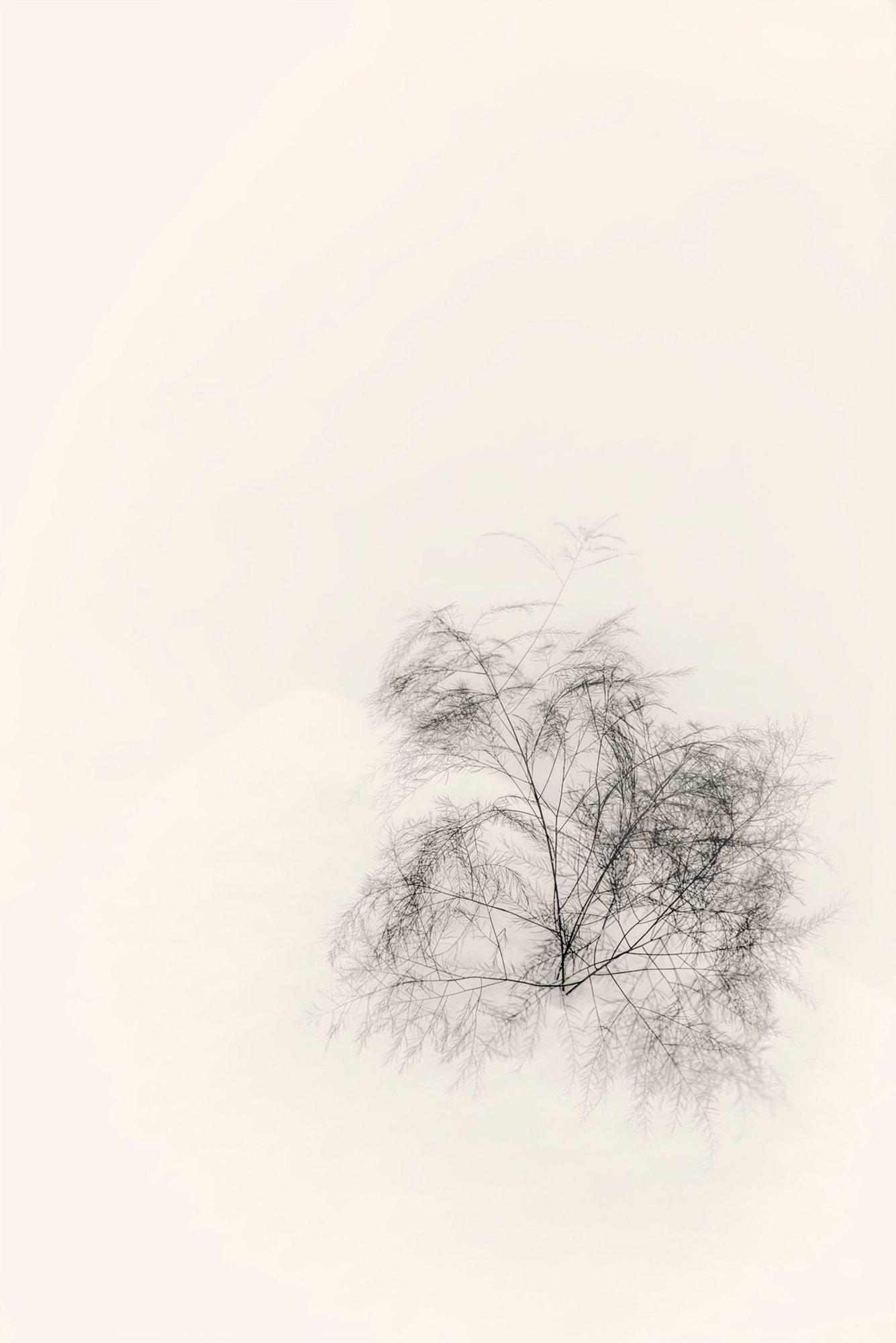 Without further conceptualization, and by falling back on my intuition, I try not to add or crowd my shots but peel away the unnecessary while using only my lens. I find there is something immediate and spontaneous that occurs in my frame’s deep stillness. This is the same feeling that accompanies my walks (especially in winter): it is as if the perceived world (phenomena) and the meaning therein (noumenon) were fused and revealed. In my images, I hope that the noumenon itself has been laid bare, as it were, for each viewer’s own discovery.