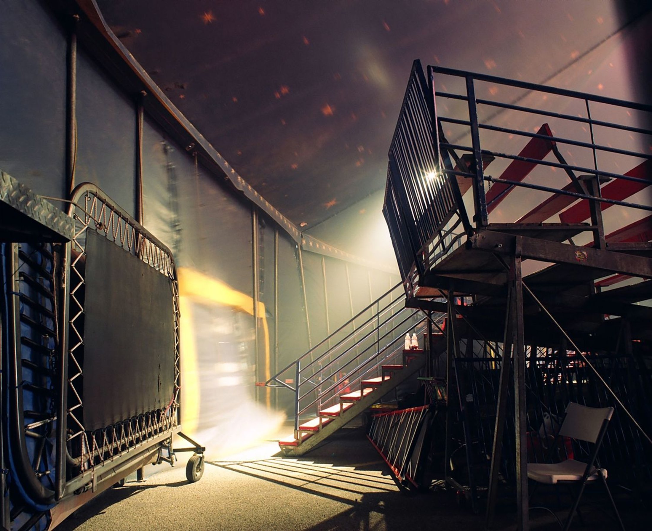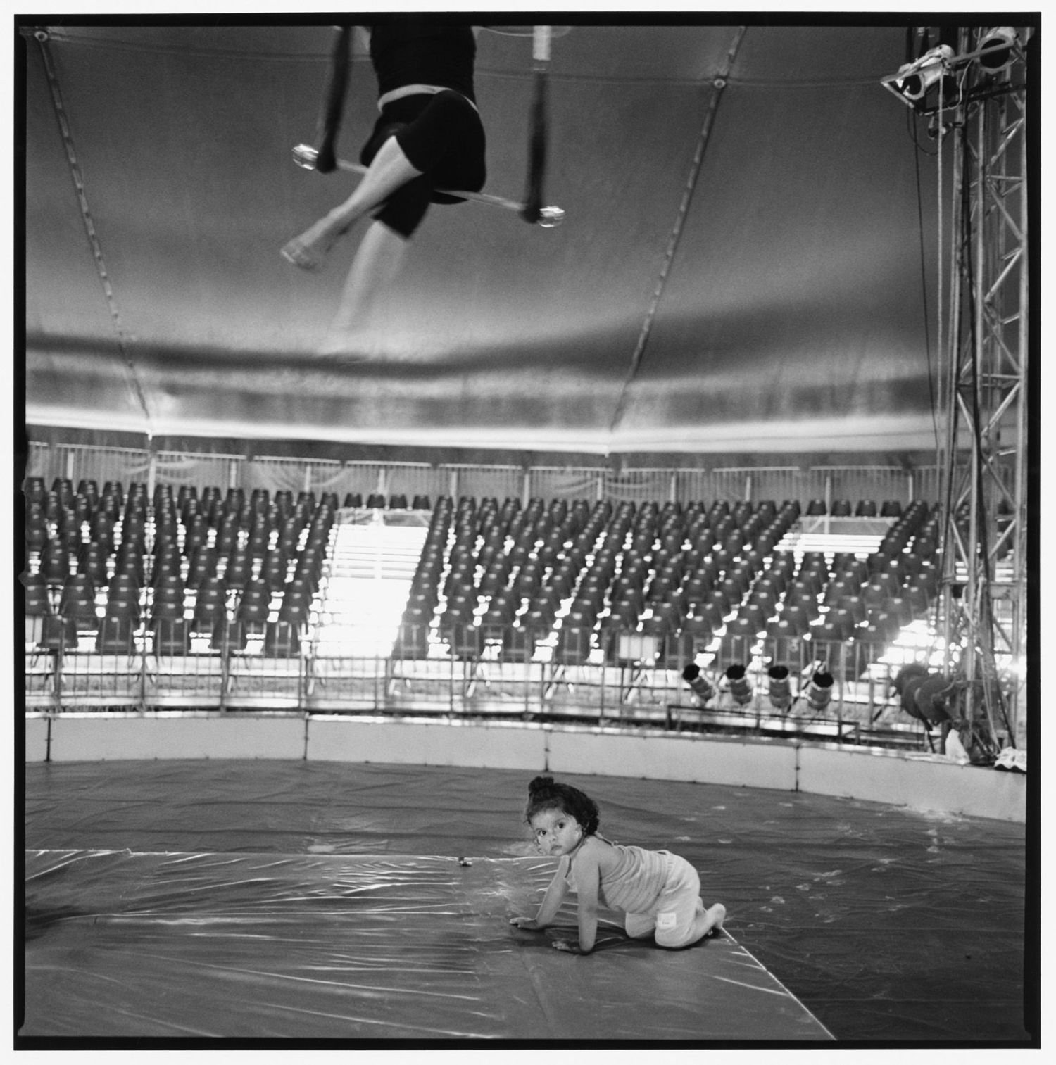 Taking the theme literally, Rachael Jablo shoots enigmatic, atmospheric scenes in and around circus tents. The spaces she photographs are not meant for the public eye—rather than focusing on the stage or the performers, her lens captures quiet backstage areas and sagging rigging. Her images are less concerned with performance and more with illusion and the mechanics behind the spectacle.