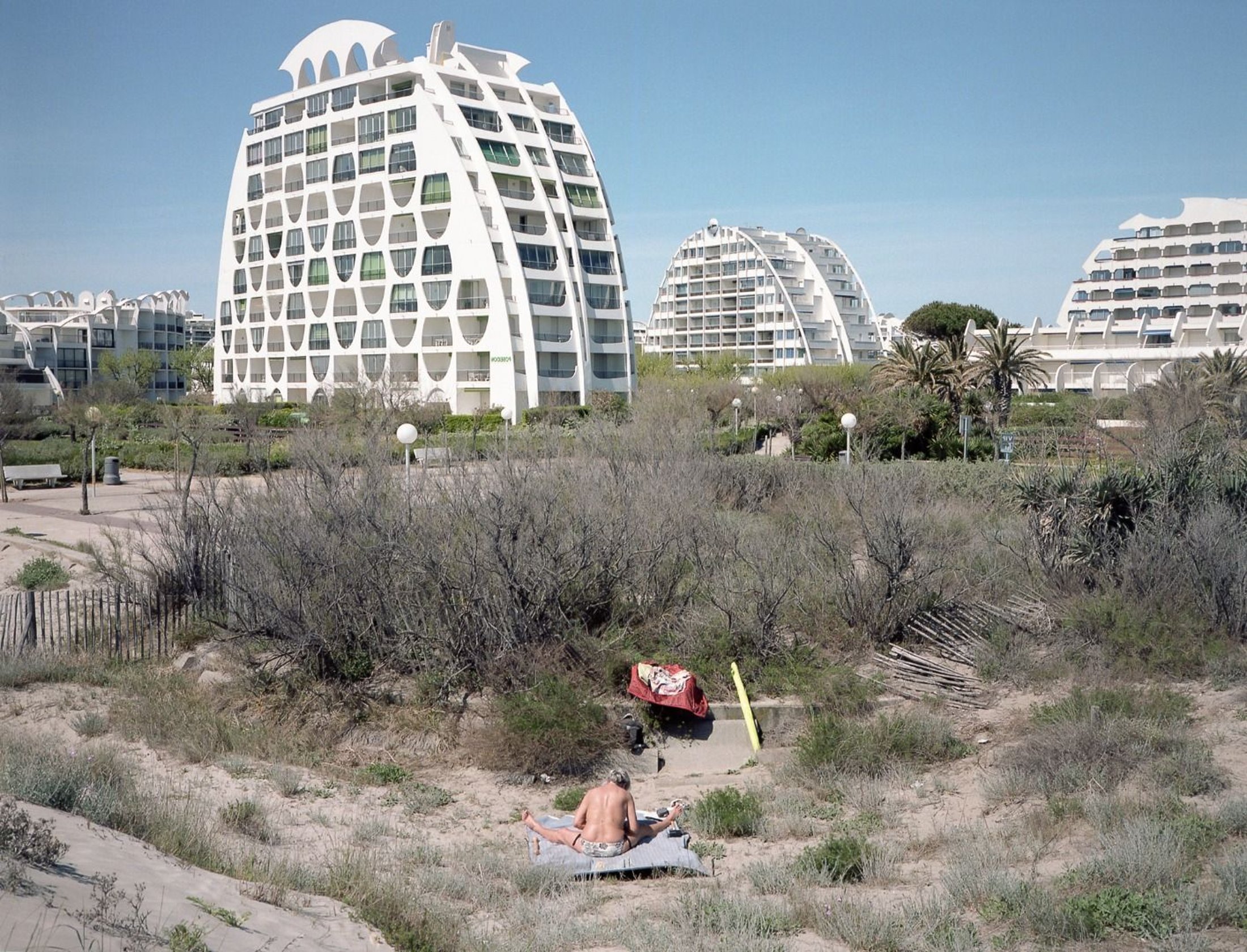 “Fifty High Seasons” looks at a stretch of French coastline between Montpellier and Perpignan that was developed into a series of coastal resorts in the 1960’s. This unprecedented project, know as ”La Mission Racine,” was originally initiated by President General de Gaulle. Ahead of its time, innovative architects were hired for each town to construct unique spaces adapted to the local environment.