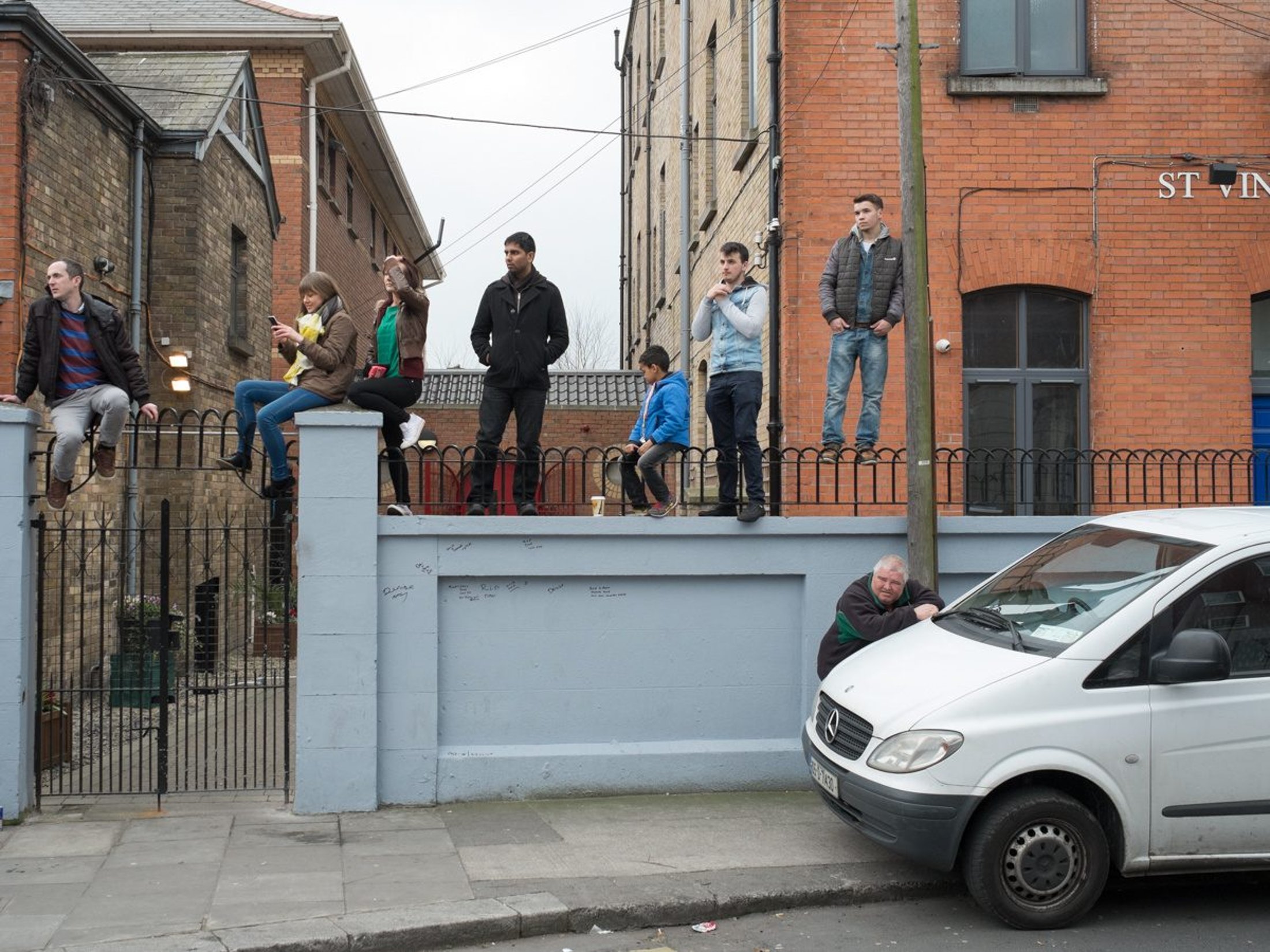 These sets of images were taken during the build-up to the St Patrick’s Day Parade in Dublin over the last few years. While the parade itself is well- (or even over-) documented by the mainstream media and amateur photographers, the photographs here focus on the people who attend the event and the backstreets that come off the main thoroughfares. Thus, the project emphasizes all the oddities and forgotten moments that result from such a mass gathering of people and would-be revellers, in the moments before and after the celebration.