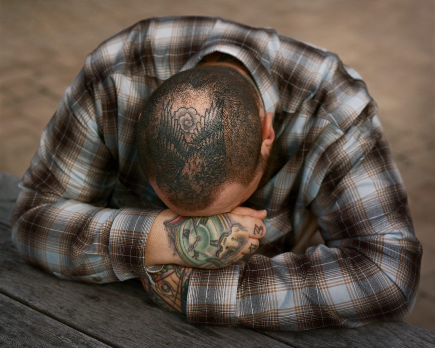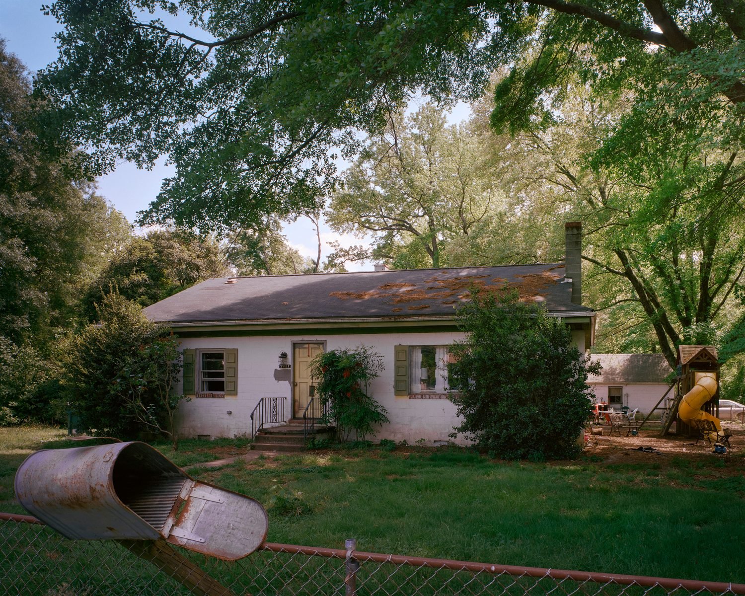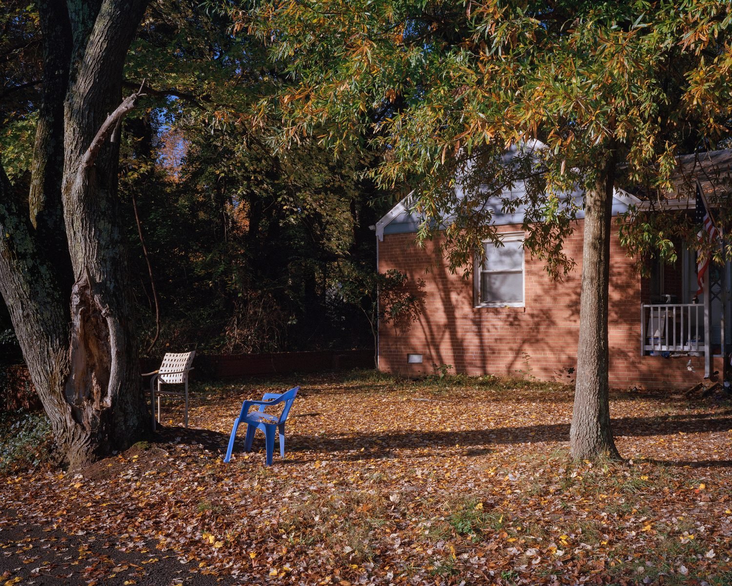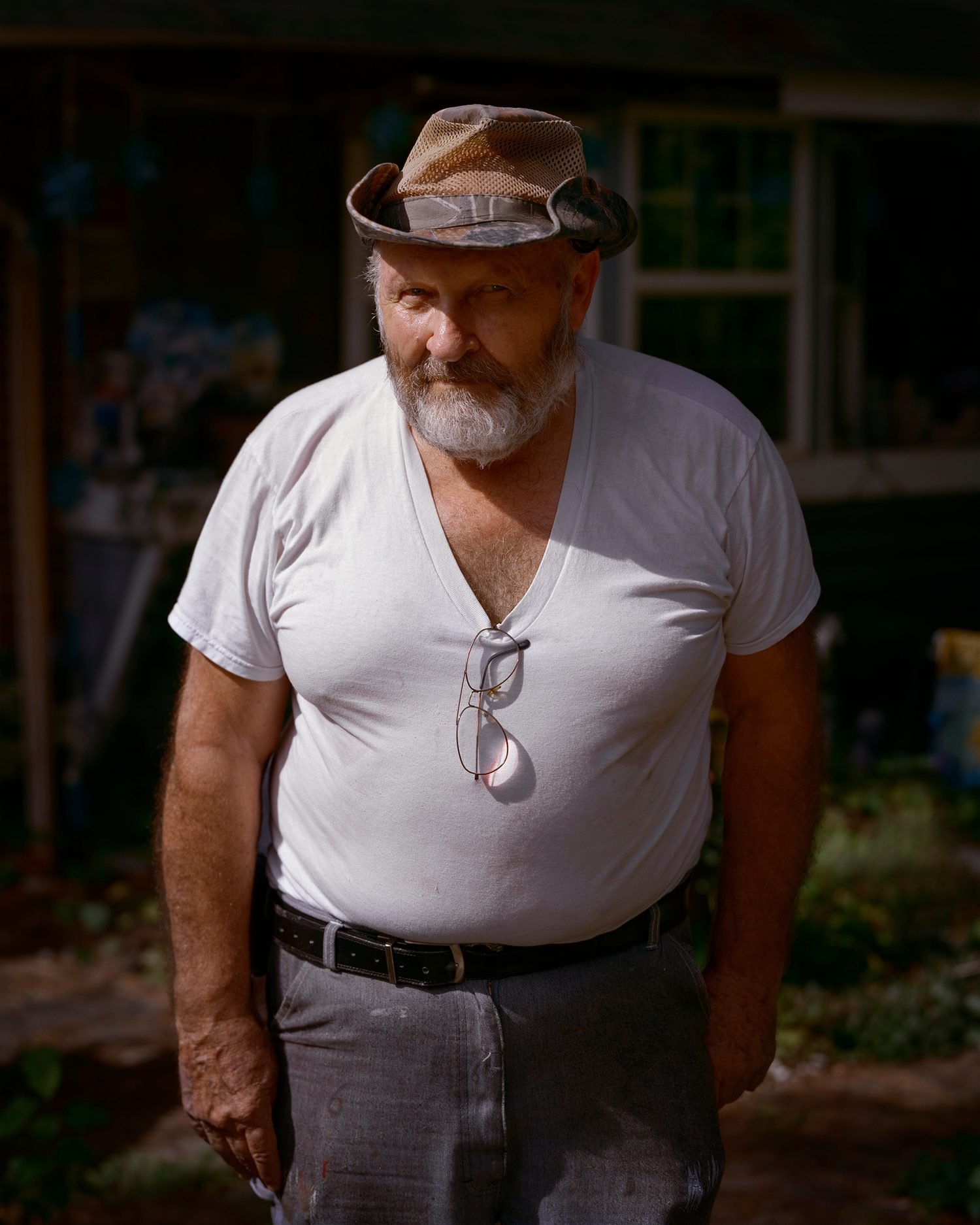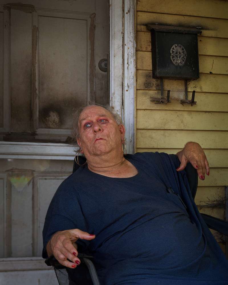 This broadened perspective allows for not just different entry points to the work but also a deeper look at the complexities straining below the surface. There is a photograph of a neighbor named Butch, sitting on his porch with his face made up, hoop earrings on, his nails painted red. According to Rocheleau, “Butch represented this wonderful contradiction where he told me he wanted to shoot anyone who were to try and move the Robert E. Lee statue and on the other hand here he is, a cross-dressing male in a hyper cis male community.