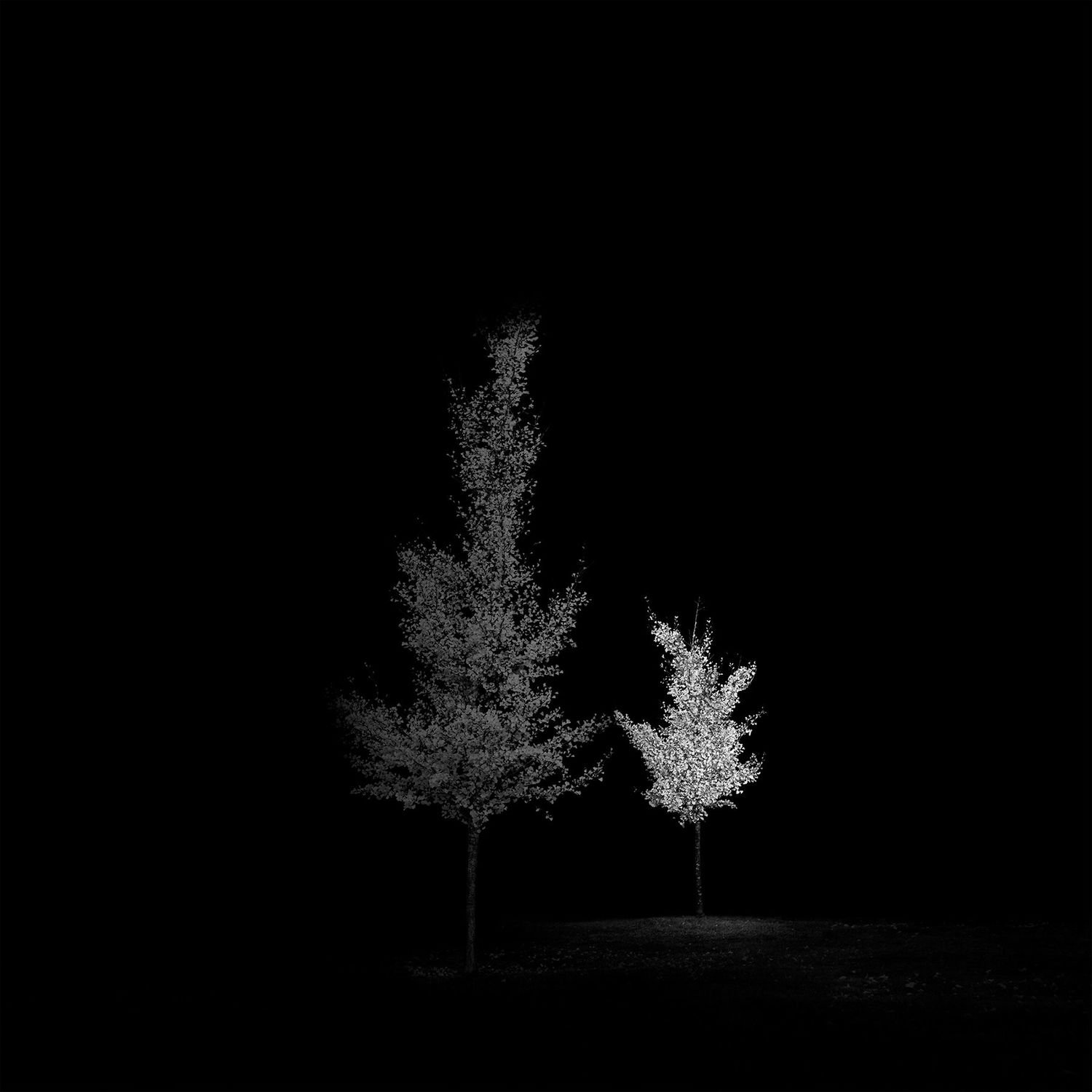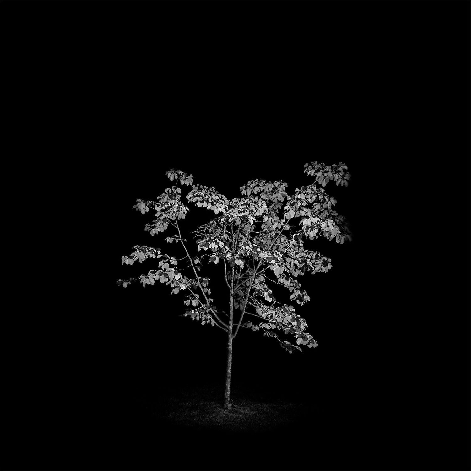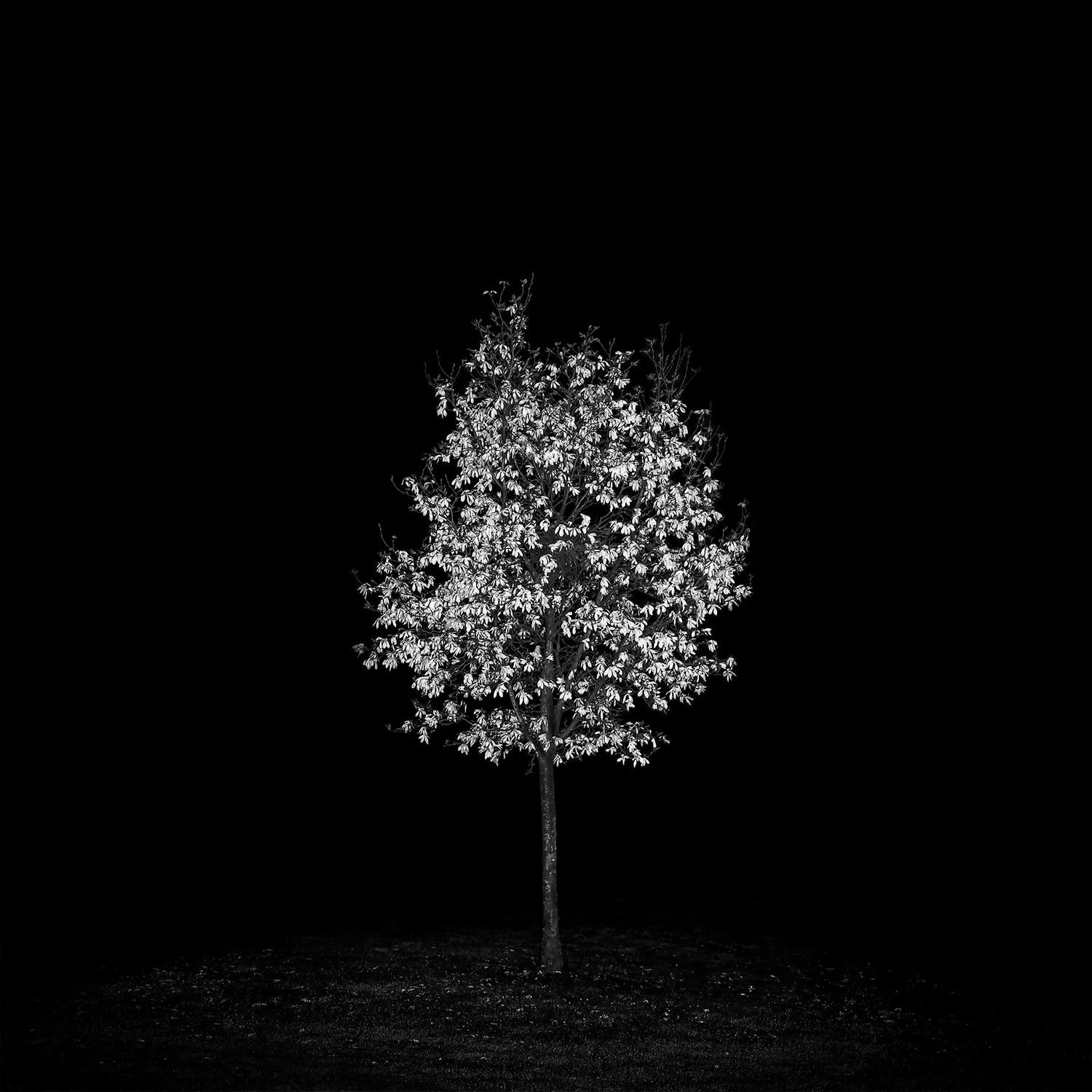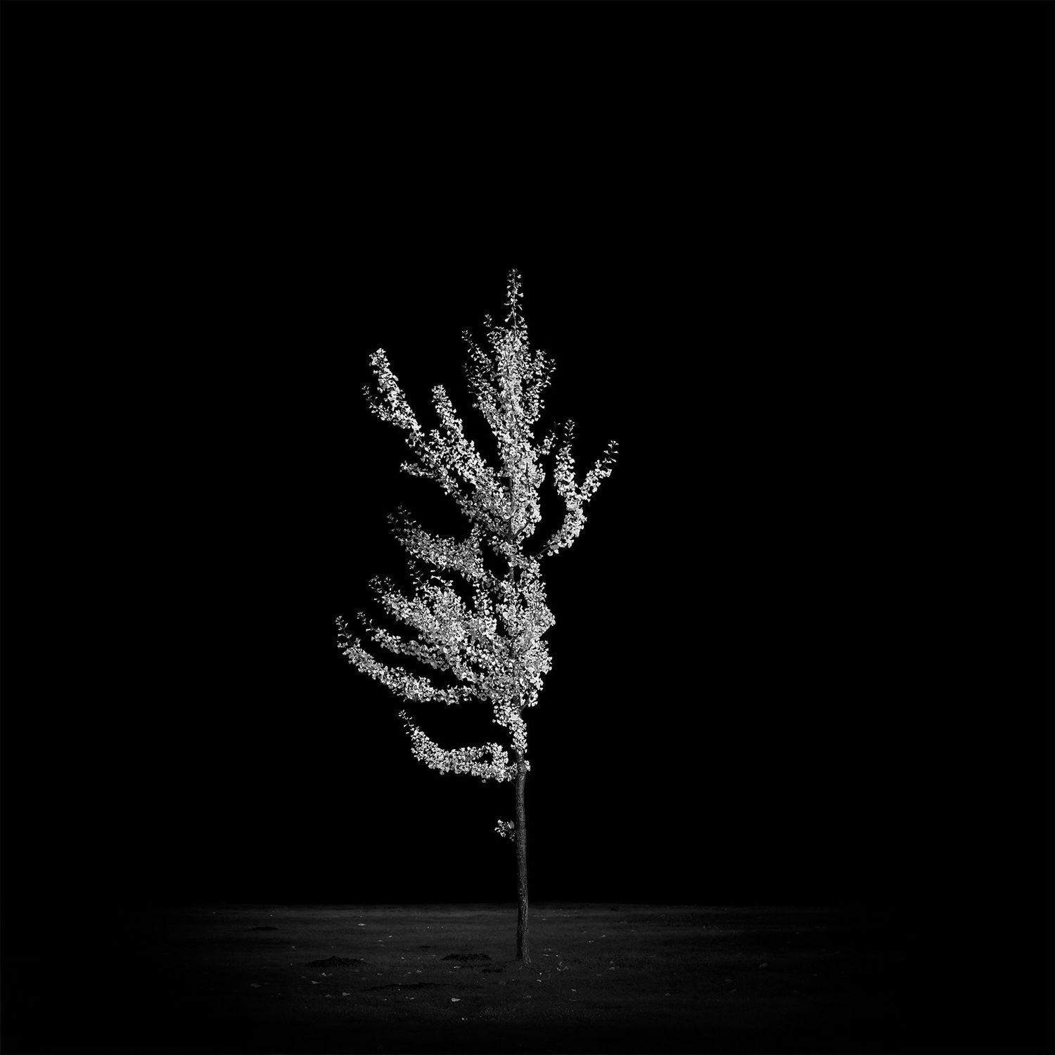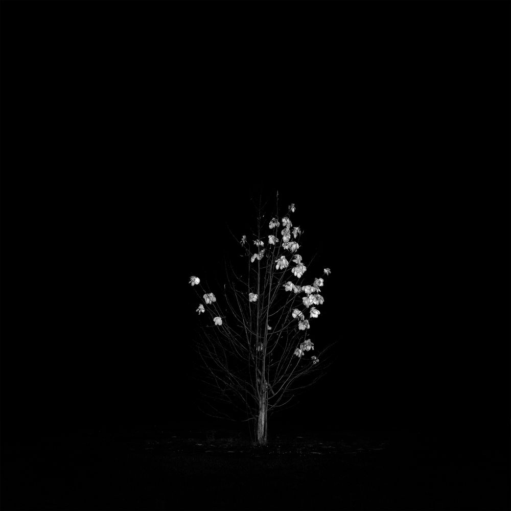 These treescape portraits attend to the foreign and strained experience of suffocating under the loneliness of grief, while also feeling closed in and observed like an object of curiosity by well-intending loved ones offering sympathy. I yearned for my mother’s presence while also leaning away from the solace of friendship. Each image in Shock is set against a stark black background—a contained terrarium of grief, observed in isolation. The beauty of the natural landscape sharply strikes against the darkness, a silhouette of longing, of solitude, even of hope—a document of the traumatic impact that marked the crisis of losing my mother.