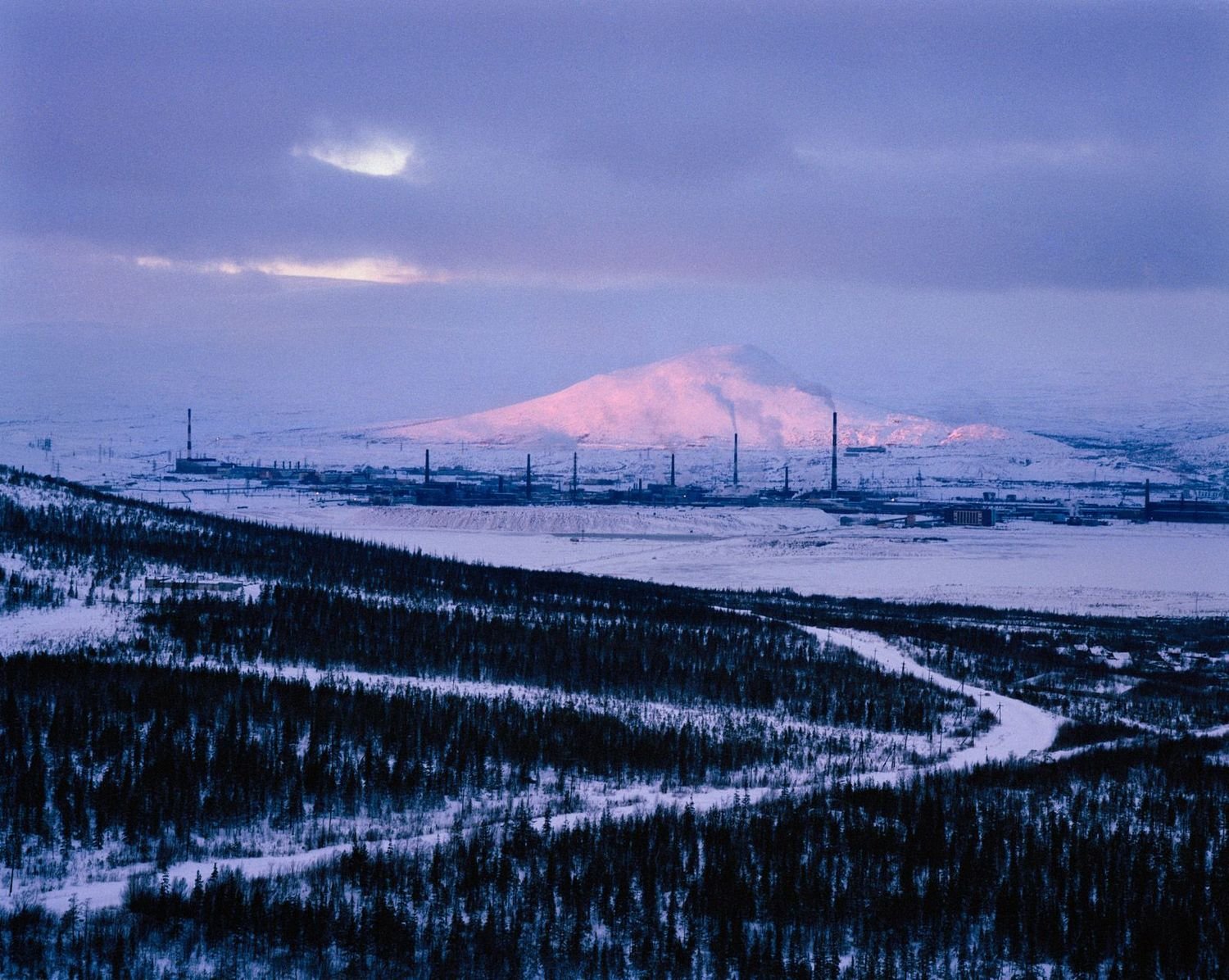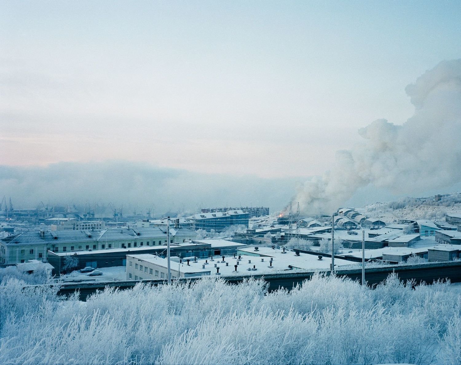 Since Motherland, Roberts has continued to build on his own visual language, grounded in an expansive viewpoint that prioritizes the small-scale representation of his subjects in the greater context of their landscape and surroundings. But one particular project, created during the same visit to Russia that catalyzed Motherland, has received less notoriety than his more recent work. Polyarnye Nochi is a series that documents the Kola Peninsula in northwestern Russia from mid-December to mid-January, when—as a result of its close proximity to the Arctic Circle—darkness blankets the region for nearly 24 hours a day. The title, “Polar Nights” in English, directly refers to this phenomenon, occurring as the sun hovers just below the landscape’s horizon.