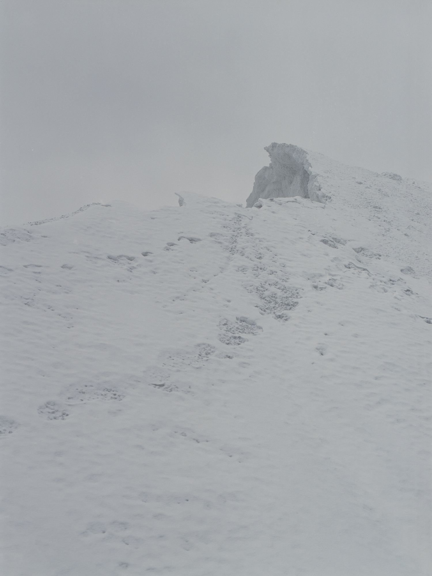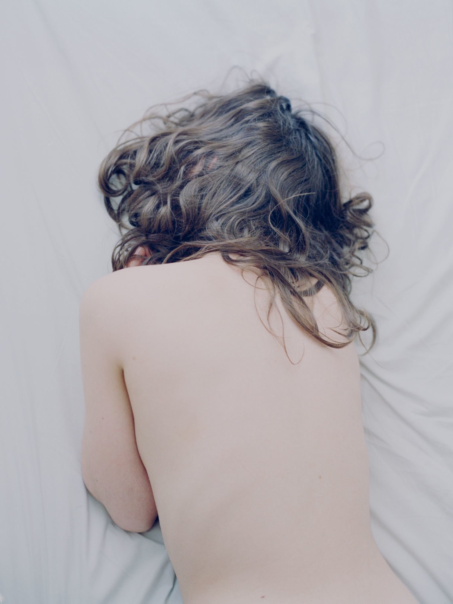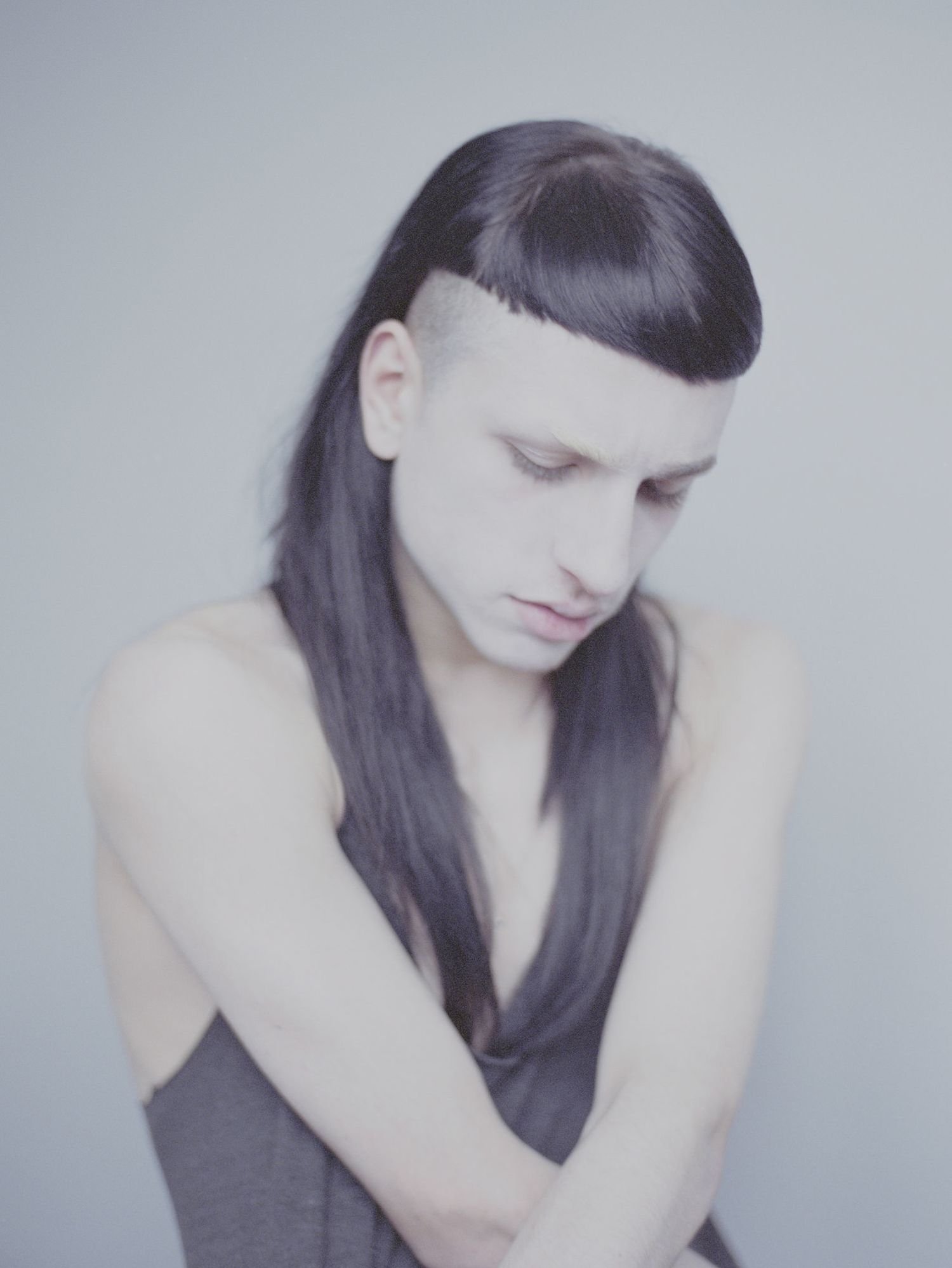 The images in ”Löyly” evoke incontestably romantic painting; a double cloud threatening as a tornado; landscapes of frost and cold. Many of the young people are photographed from the back, in postures of reverie or withdrawal. They look as if they exist in another world. A very pale young man, with glacier eyes and raven-black hair, makes a recurring appearance in the series—he has an androgynous face and a dreamy, melancholy look. He is lost in his own inviolate interiority. Open for a word or a caress that will not happen.