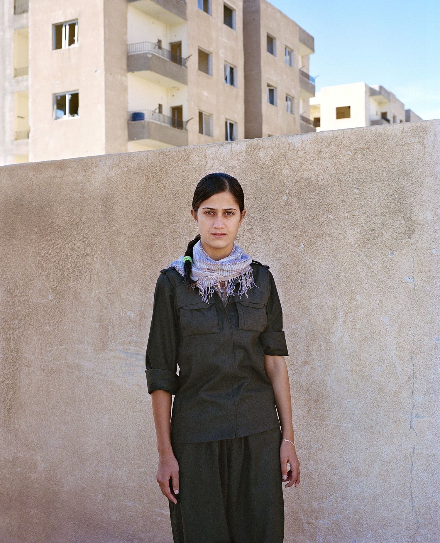 This project attempts to trace the collective desires held by these Kurdish freedom fighters. In the course of my effort, I have tried to capture not only the individual traits of these women, but also their shared destinies. At the same time, these pictures uncover a perspective on their environment, especially the poetic way that the Kurdish culture views itself. Finally, it presents a view of Kobanî, a city in Syria, which has become a ghost town: buildings often only exist in memories. Walls are shot to pieces; empty window frames only show lost spaces. And yet, a ragged, melancholic coziness exists amidst all this destruction.