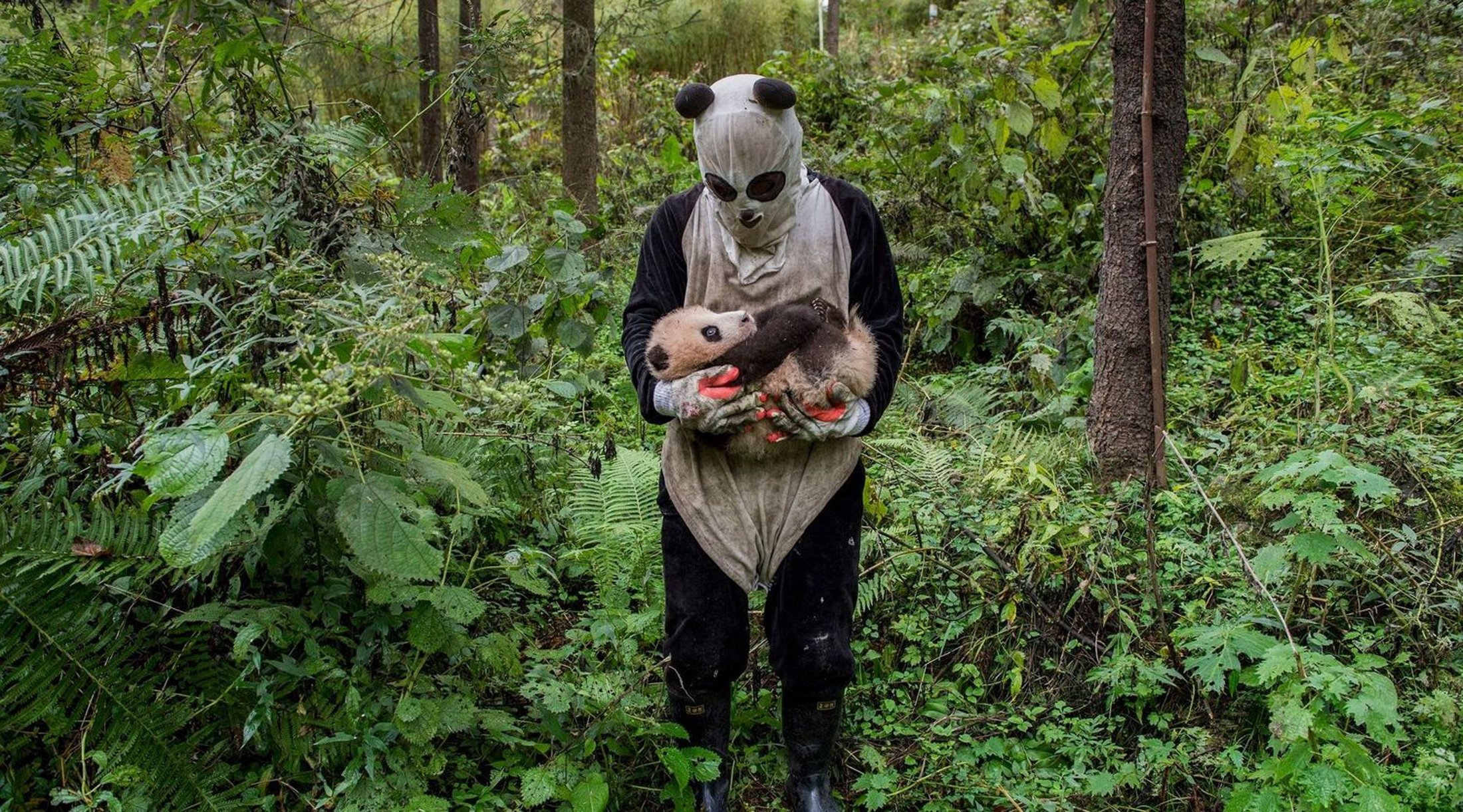 Is a panda cub fooled by a panda suit? That’s the hope at Wolong’s Hetaoping center, where captive-bred bears training for life in the wild are kept relatively sheltered from human contact, even during a rare hands-on checkup. From the series "Pandas gone wild." © Ami Vitale, United States of America, 2nd Place, Professional, Natural World, 2017 Sony World Photography Awards