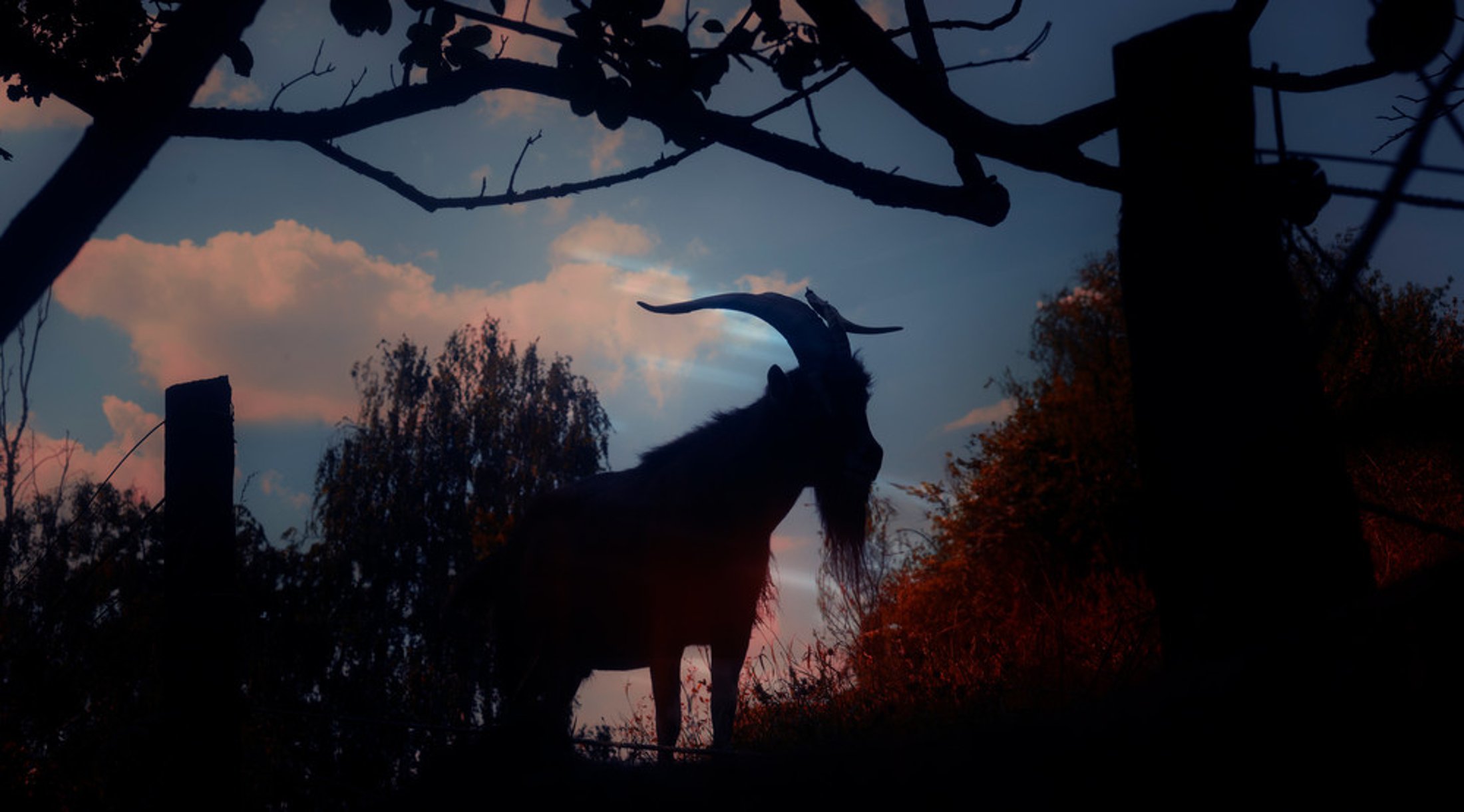 This series explores the emotional oscillations of impending parenthood through dusk-drenched scenes: visions of goats, thick-fleeced rams, and faceless figures haunt deserted parks and dimly-lit stages, presenting a theatre of quiet chaos. Throughout the ages, the constellation Aries has represented a pocket of space rich with stars, symbolizing the cardinal sign of the zodiacal ram and elemental fire, and now also corresponding to the predicted astrological sign of the photographer’s child.