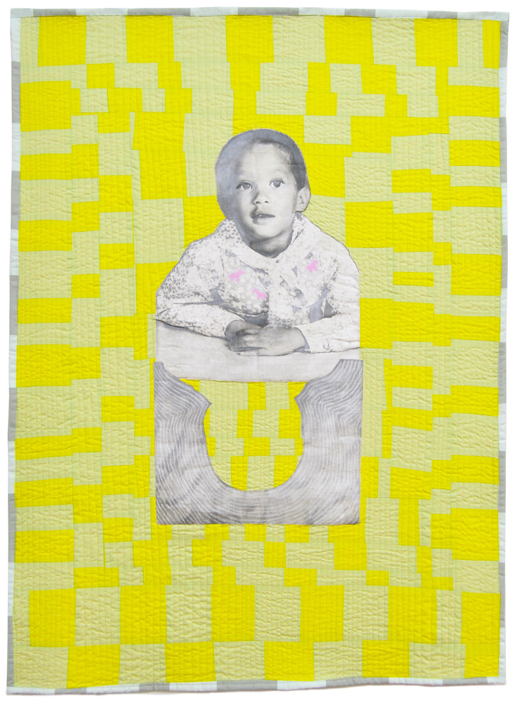SS: In an area of the textile work Safe Passage, there’s a maternal figure standing in a protective stance with two children. The image of her and the children is repeated and changes to a sort of ‘haint blue’ as they move through a portal or passageway. I chose this blue color as an homage to the way it’s historically been used in the American south by people of African descent to ward off evil spirits, by mimicking the color of sky or water. My use of color often points to historical and/or symbolic meanings, or serves as an annotation.