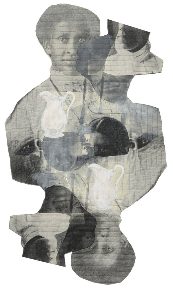 In one piece, Vantage Point, I make references to domestic labor, a recurring theme in my work. As a mother and artist constantly working with my hands, I often feel as though I’m in a continuous state of physical labor. This piece shows a little girl looking beyond the frame, away from images of women that represent the societal expectations placed on her to perform labor or present in a way that’s deemed “respectable.” In another piece I’m working on, the same image of the little girl is presented, but more of the background is visible, giving the viewer more information about a particular place and time in history. It’s a way of working in multiples as a printmaker, but exploring the possibilities of the medium in a way that’s more concerned with seeing an image or an idea with new eyes each time, as opposed to creating a reproduction.
