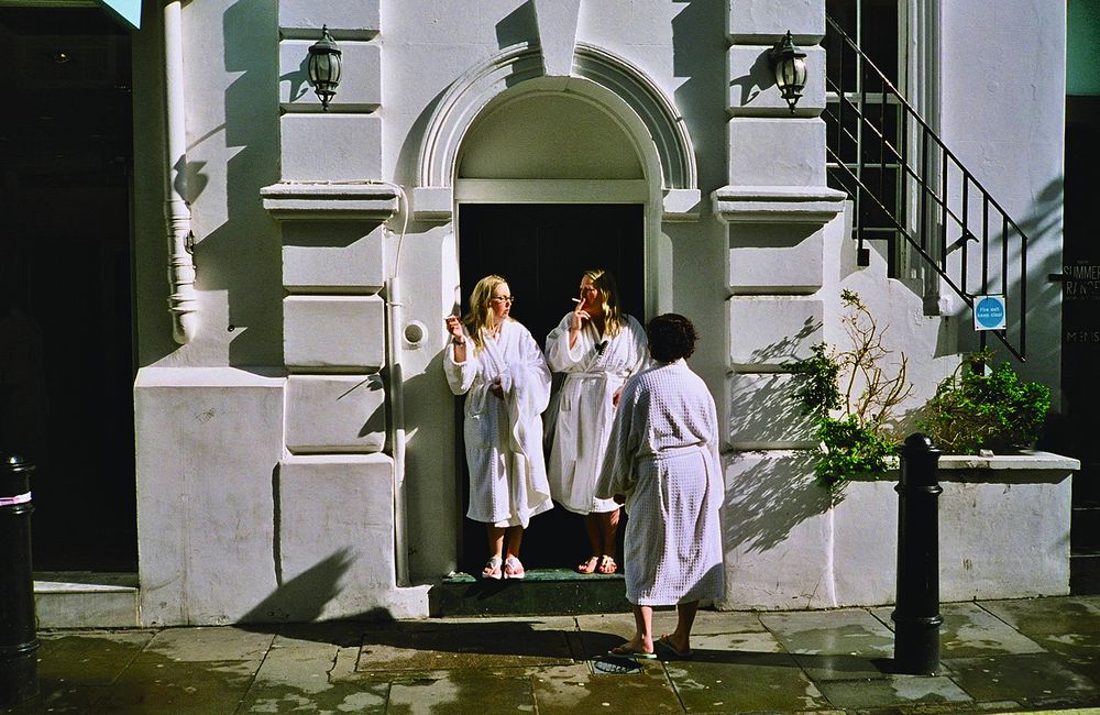 There is a photograph of three women standing outside a large building, smoking cigarettes, in bathrobes. Leslie constructs a fine narrative that explains why they are there, then pulls the rug out from under the viewer again: he goes on to explain that the picture lies by excluding what was right next to the women (in this case, a fire truck). He concludes the story with “It’s a photo that works but it is not the truth. If anything it’s better, if slightly harsher, for being a lie. Photography often works that way.”