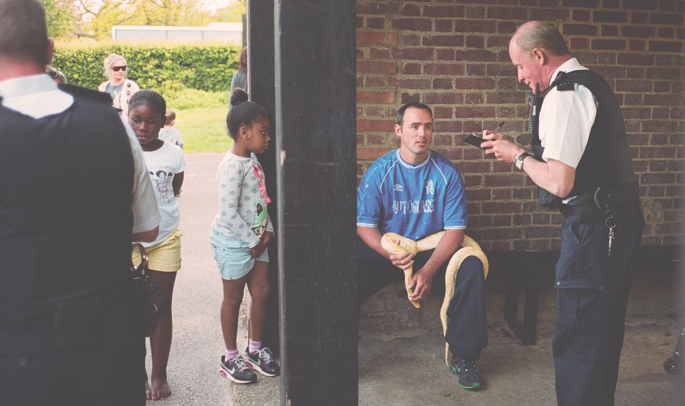 And then the narrator continues, “We listened to him speak, said our goodbyes and wandered off, astonished by this story and happy we’d got lost in the first place. Except that none of it is true, it’s all a lie. Sure, it’s a picture of a crashed car in Corsica that I took while lost on holiday, but there was no mushroom-picking girl or bent-double grandfather, no eloping or midnight chases. I made all that up. Every photograph invites speculation and imagining…”
