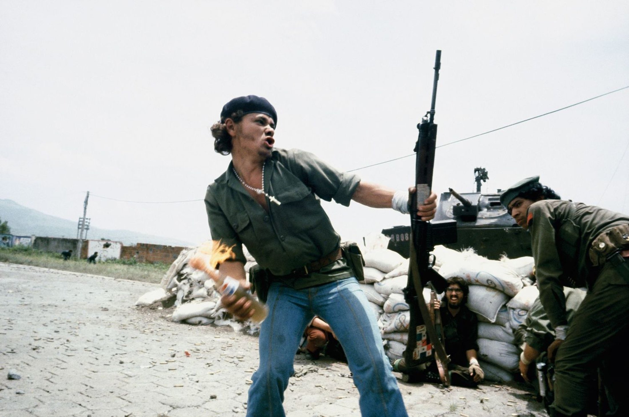 One of her best-known photographs—“Molotov Man”—resulted from her time in Nicaragua. The image, photographed during the Sandinista revolution, shows a man ready to throw a Pepsi-bottle-turned-Molotov-cocktail in one hand while holding a rifle in the other.