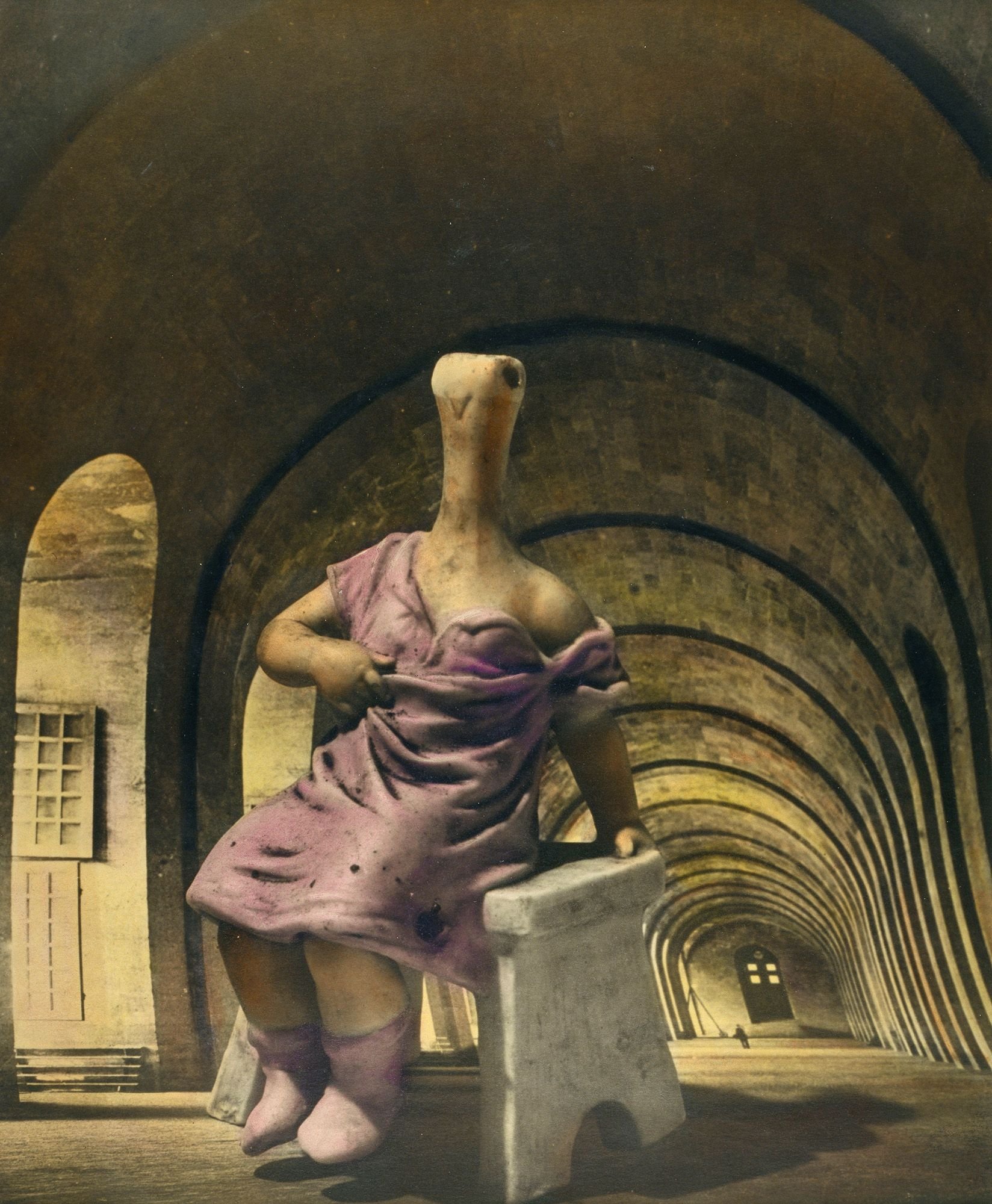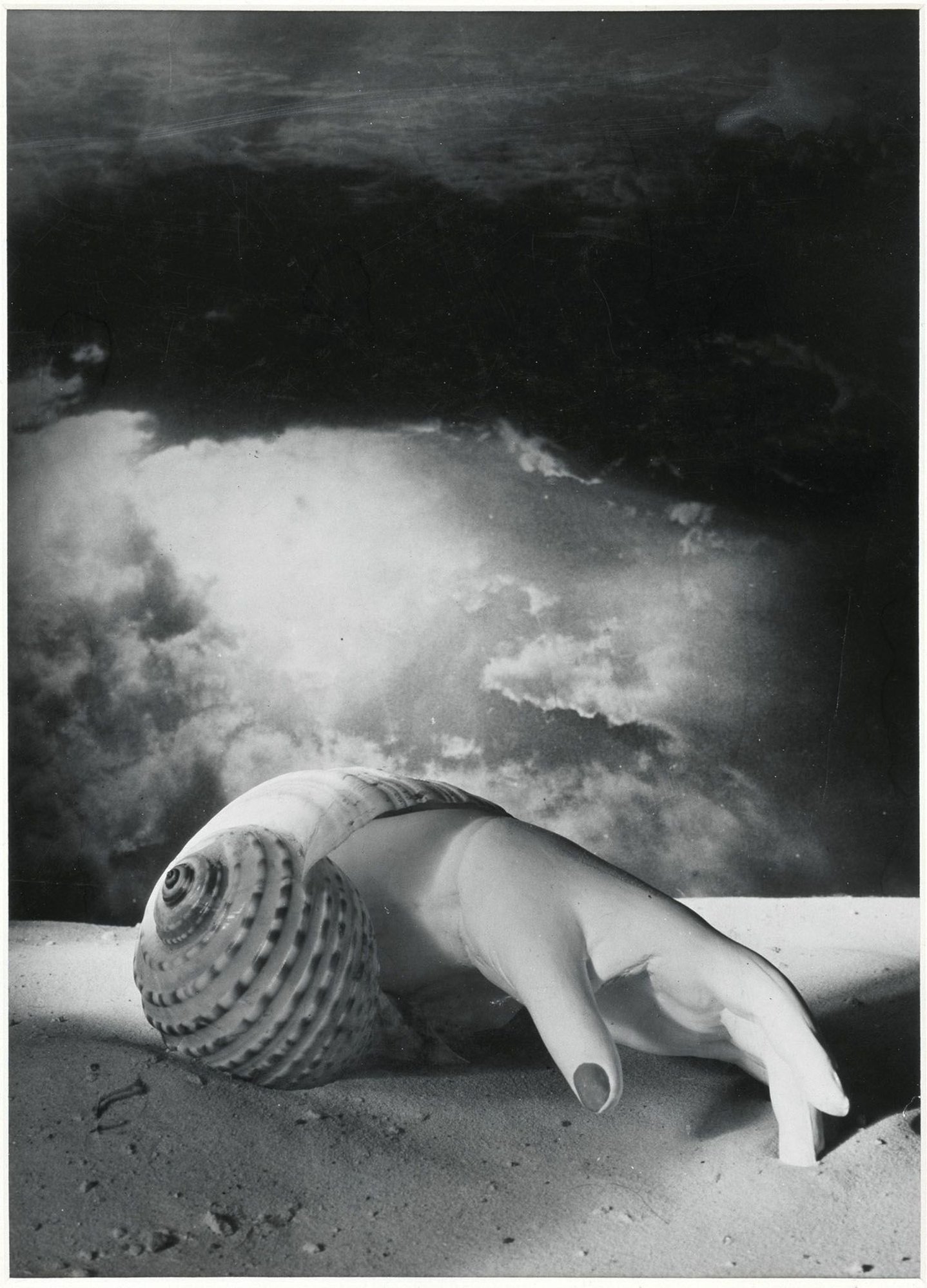 An ambiance of the oneiric pervades many of them, redolent of Freudianism; others remain enigmatic and some, like the photomontage showing a disembodied pair of female legs floating above the Seine, bring to mind one of Theodor Adorno’s observations about surrealism’s montages—though he seems to have been unaware of Maar’s photographic ones. They are not images of “something inward,” he wrote, “rather, they are fetishes—commodity fetishes—on which something subjective, libido, was once fixed.” Maar’s receptiveness to the incongruous and the unexpected reaches an apogee of sorts with the nightmarish close-up Portrait d’Ubu, thought to be an armadillo foetus.