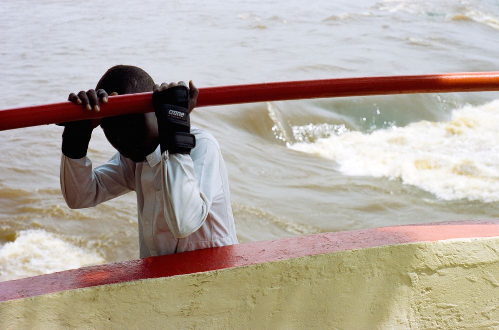 Cole’s vivid, richly colored photographs, captured using a film camera, show objects that are ordinary: a sign on a wall in Brooklyn; everyday items on top of a nightstand in Milan; construction tools on the streets of Bali; fake Gucci bags sold by migrants in Venice; oil drums in a national park in Lebanon; a telephone booth in Mexico City; muddy puddles, ladders, tarps, tufts of grass. Occasionally, we see people from the back.