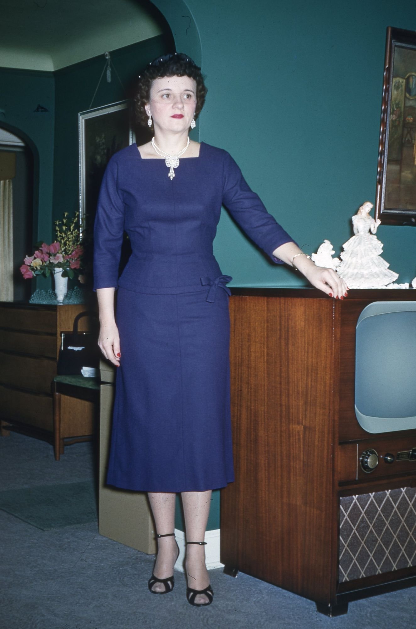 While many museums and formal institutions collect color materials by stowing them away and making them inaccessible, The Anonymous Project creates compelling manifestations of the work so that their images can be enjoyed by a wider audience. Their quirky take on exhibiting vernacular imagery falls in line with their mandate of accessibility. In particular, The House incorporates a series of light boxes that illuminate selected images from the archive, situating them in peculiarly relevant areas of the home. For example, a woman in her kitchen illuminates the entire frame of a 1950s refrigerator ajar, while a glowing image of another subject glows in an open drawer in the house’s tiny kitchen. The images feel comforting and familiar, reminiscent of photos we see in old family albums, except they have been returned to their original settings in the various rooms of the house.