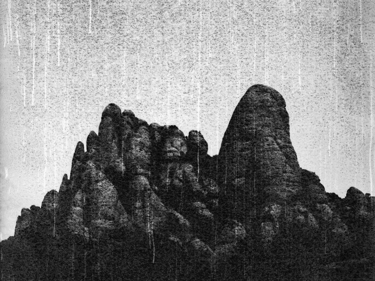“While doing that, I came to the conclusion that if I wanted to make a stone look like a mountain, I should be next to an actual mountain,” she says. “So I applied to an artist residency next to a mountain, took my stones with me, and photographed the surrounding landscape. I was captivated by the ever changing ‘faces’ of the mountain, how it kept changing in appearance.” Layering together these different images, she experimented with blending their forms into a rich visual experience, indistinguishable in scale and perception.