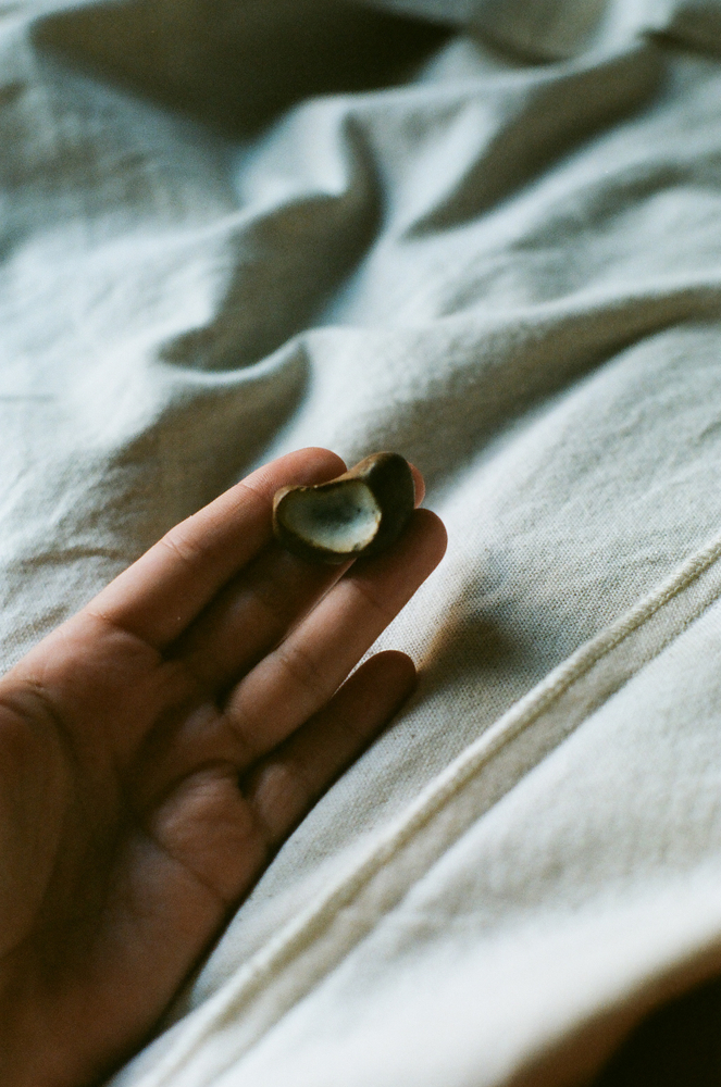This fascination is an instinctual, sensory one that often eludes language. From a young age, we collect things from the natural world—rocks, shells, leaves, flowers—and we admire them because they teach us scale and perspective, the history of the earth, growth and death. But we also love them because they are our chance to own a slice of nature, hold it in our hands, and take it home. Every rock has its own origin story, of course—where it came from, the way the earth shaped it across centuries—but for many of us humans, a rock’s second story—what we might call its emotional story—starts when we pick it up.