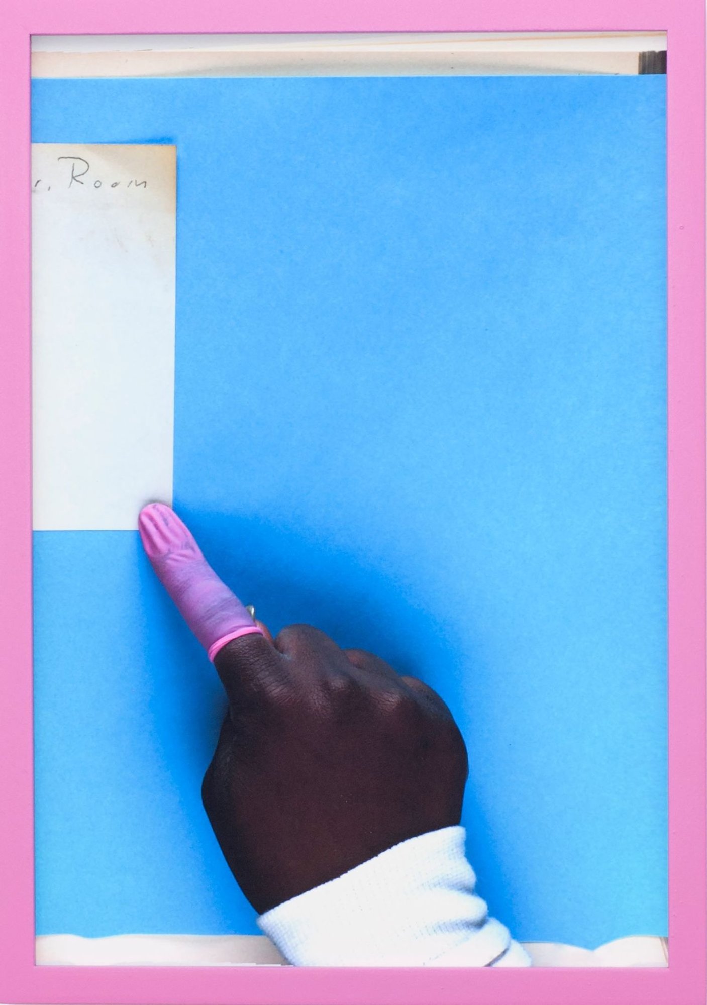 Andrew Norman Wilson’s Scan Ops provides a strangely beautiful look at another area of digital labour. The images are failed scans from the Google Books program to digitize the world’s libraries, where traces of human operators – a hand, a finger – snuck into the frame. They are scratchy, off-centre compositions, but unwittingly suggestive of beauty in the human form and, in contrary to the technological ideal, imperfection.