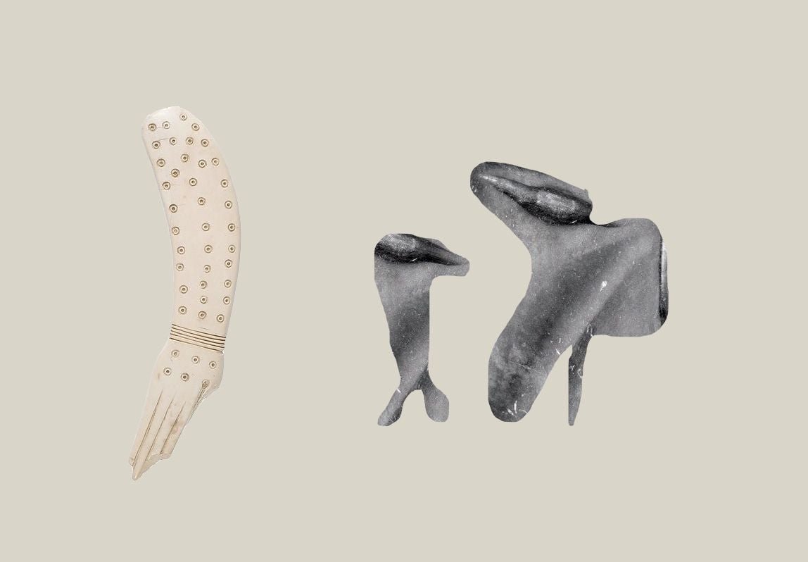 While at first the structure of Giovanna Petrocchi’s pseudo-museum display Modular Artefacts, Mammoth Remains and other works may seem at odds with the ambiguous images that melt through Jung’s drapes, its claims to authority are deceptive. Working with a collision of different techniques, from collage to 3D printing, Petrocchi’s ‘museum’ delivers no clear meaning, instead dislocating ancient objects and artefacts from their origins and planting them into an imagined (dis)order. Alberto Feijoo also shares the collector gene. Using the tools of architects and engineers, his diorama of weird objects and images invite the viewer into a personal universe where different kinds of images assemble. Deciphering these odd groupings of images and objects requires an unusual kind of logic, where imagination and rationale must mingle in order to create associations.