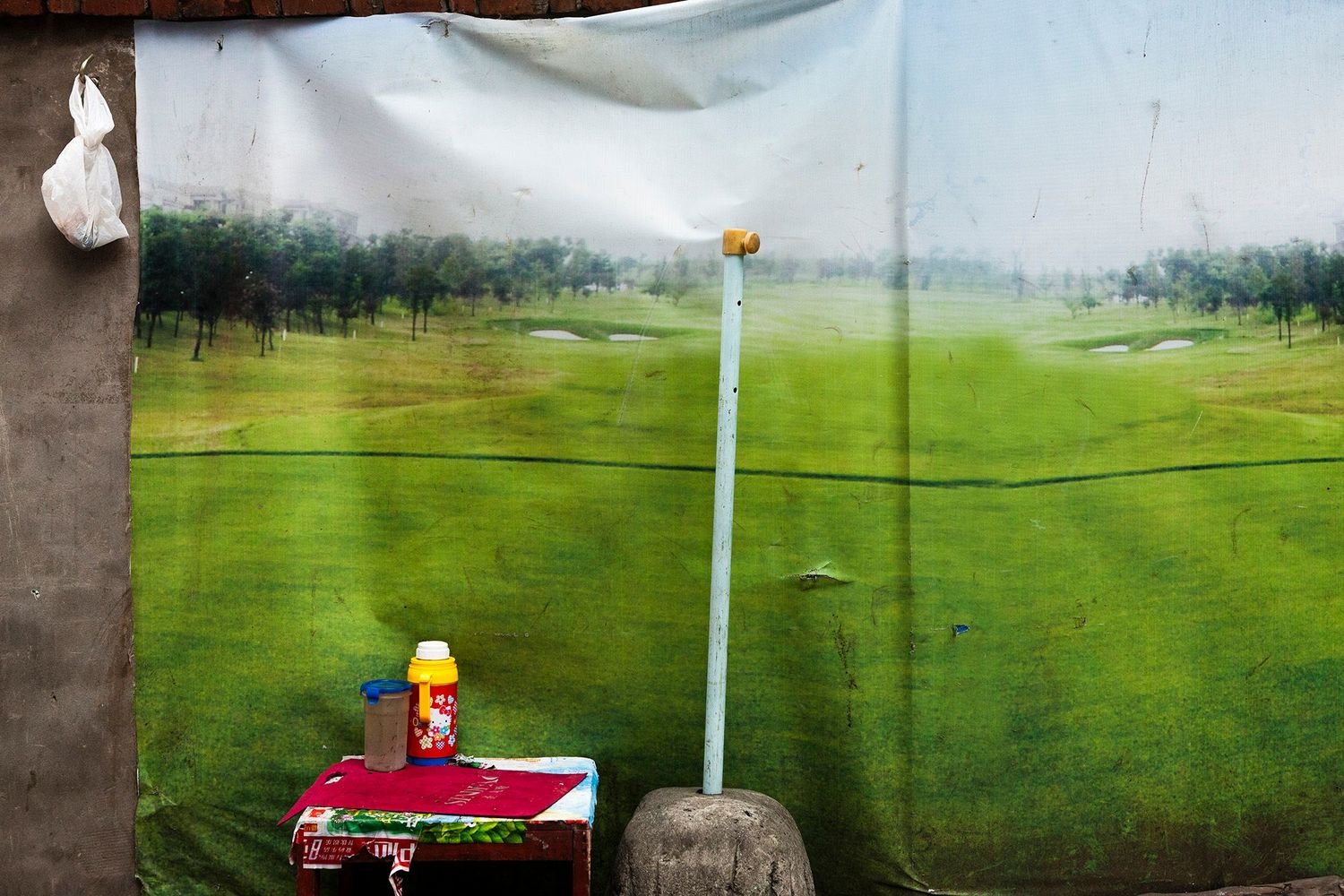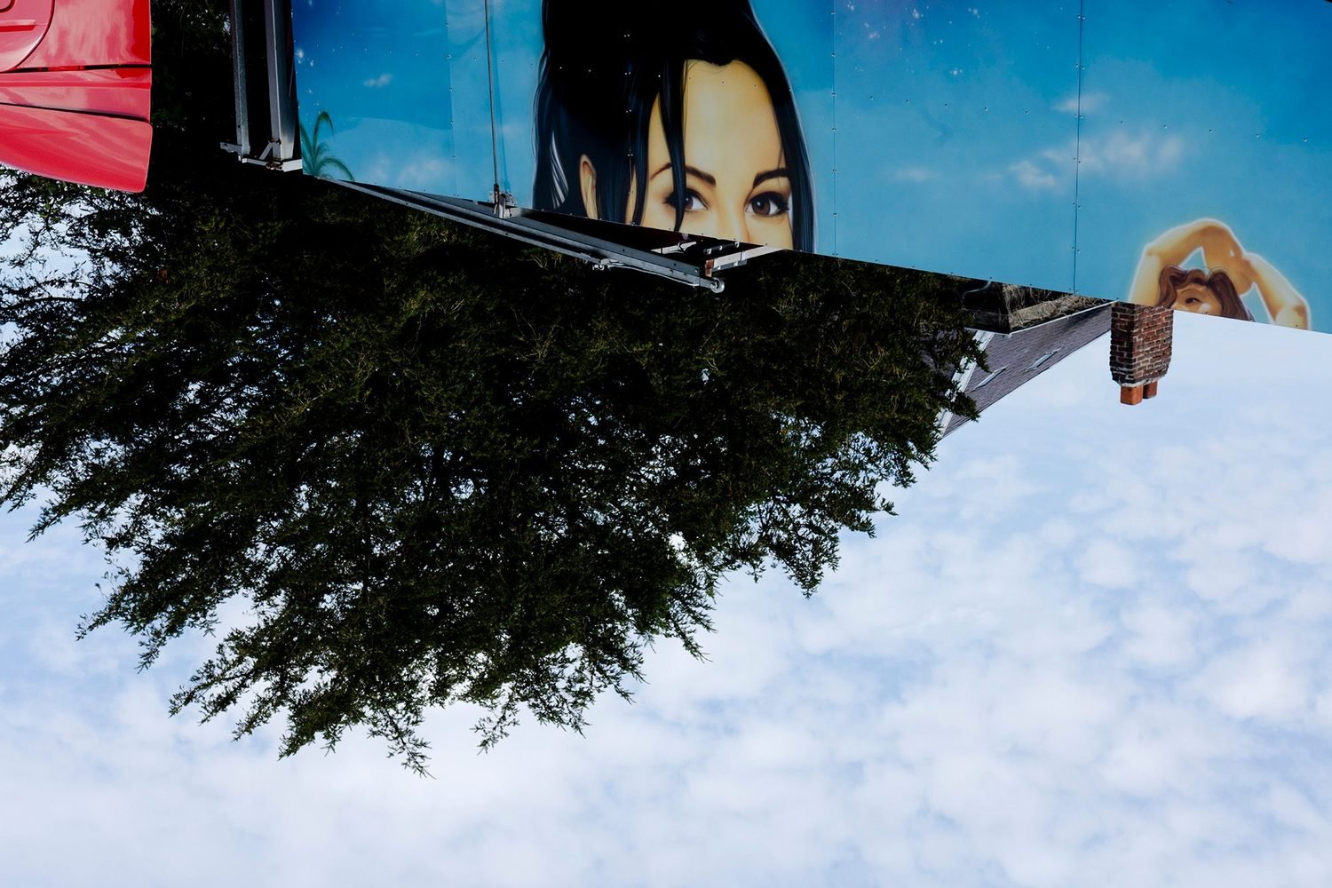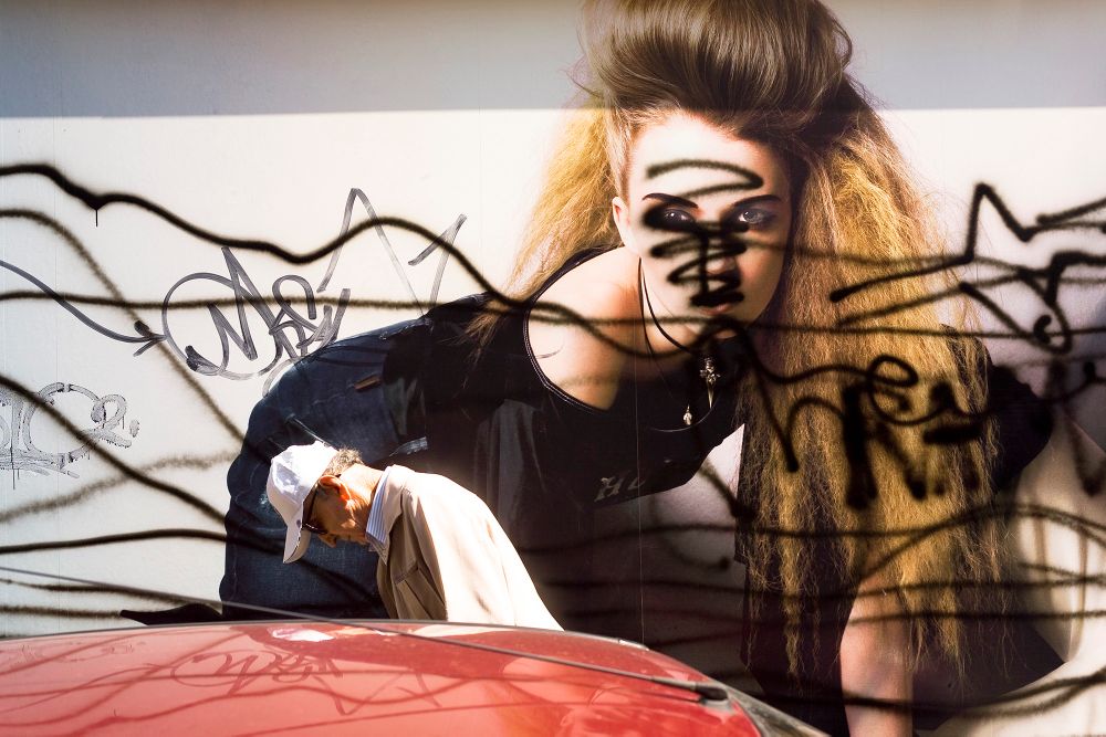 As well as Baudrillard, whose own photography was fascinated with trompe l’oeil, Luigi Ghirri and Martin Parr are also relevant—Ghirri with his wry response to consumer culture’s pervasiveness and Parr’s more abrasive depictions of people caught amidst image clichés. However, Derksen’s is a response to the greater intensification of the image world in urban spaces, the digital-borne ubiquity and proliferation of images that now can be reproduced on almost everything.