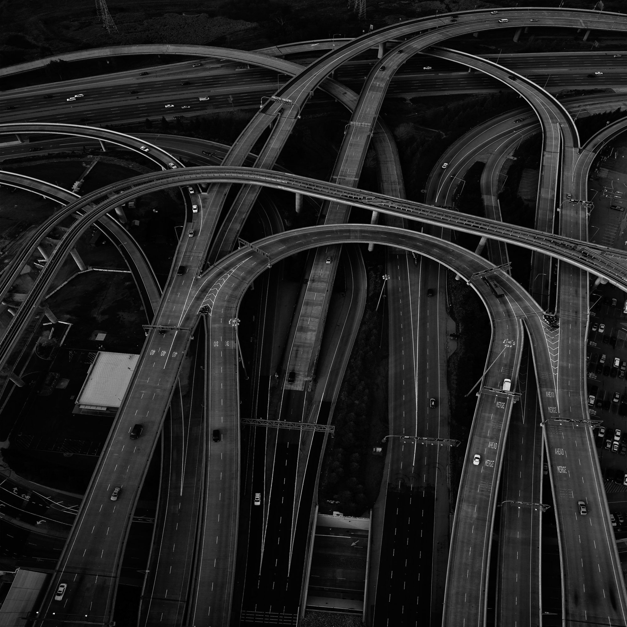 Beginning in 2009, Heinser began to investigate the interaction of man-made structures and landscape, specifically, aerial views of bridges, expressways and airport runways. In this series, he asks us to re-imagine these structures as more than arteries of action, depicting them as stand-alone semiological elements. He extends our perceptions of these agents of everyday interactions, contemplating the concept of “bridging” in a broader way.
