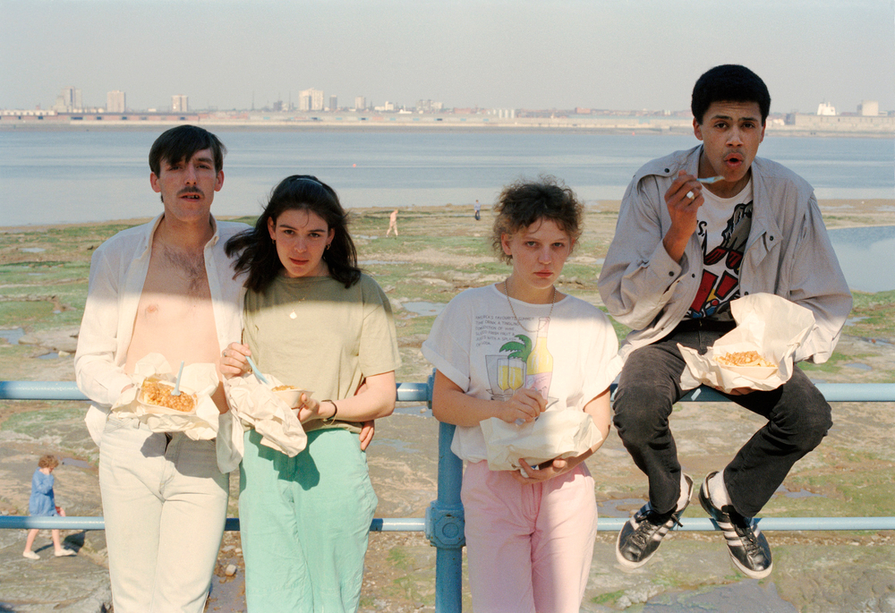 Light is integral to the sensuousness of many of the photographs in this book. Take, for example, the group portrait in which patches of sunlight partly illuminate four young people as they eat chips and beans at the seafront. The picture is poised beautifully between areas that are lit up, high key, and those in shade. It is a soft not harsh tonal shift that holds the picture, makes us interested in the beauty of this moment among these people. No matter how ordinary and unexceptional this moment may be, Wood’s way of picturing makes it special, gives it value.