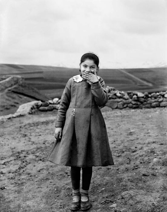 In the borderlands of Iraq, Iran, Syria, and Armenia the dresses were still the same. The land is harsh and unforgiving, the mountains are high and cold. Life is difficult here, and the lives of the small girls who inhabit it is just as harsh. I wanted to make a series of portraits of these girls on the borderlands.