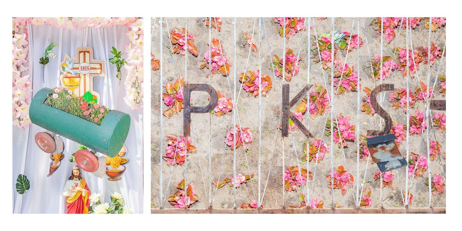A somewhat odd counter image to an industrial past is the use of flowers and gardens in the city’s branding. “It reminded us a lot of Ukrainian industrial cities broadcasting the same message. For example, Donetsk: City of Roses. Of tulips and parks. The green city. The sunny city,” says Poliakov. “But, the funny thing is, the city is actually decorated with many flowers. And they don’t look like nature—they are more like an emphasized statement.” On a contemporary level, this decorative atmosphere offset Katowice’s reputation as the most dangerous place in Poland—another image of the city that Subach and Poliakov had encountered before travelling there. “This cool ‘New East’ image of working class fashion, rappers and gangsters, industrial ruins and brutal architecture is being ruined by cozy gardens, carefully planted by smiling old ladies,” says Poliakov.