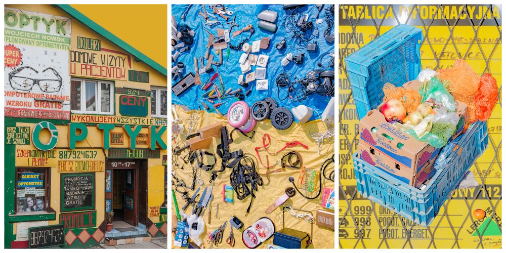 In contrast to Ukraine, Poliakov feels that up until now, Poland’s evolution out of its Soviet past towards EU integration has been moving fairly quickly—and with it comes cultural homogenization. On the lookout for Katowice’s own aesthetics, the two photographers were drawn to spaces and communities that didn’t have enough time, money or references to copy from a global standard. “If you have no reference, you have to be creative,” he remarks. Finding a new form that encompassed the diverse elements they came across was the challenge. “We were trying to find things that were aesthetically unique in this region. Raw, sometimes kitschy, sometimes old-school, but strong and beautiful,” says Poliakov. “And classical photographic framing was not enough to share the image we had in our head.” Increasing the density of each image by layering objects onto each other, collage enabled the pair to arrive at a form that brought together their experience of the place—including both the invisible and visible elements of Katowice’s past, present and future.