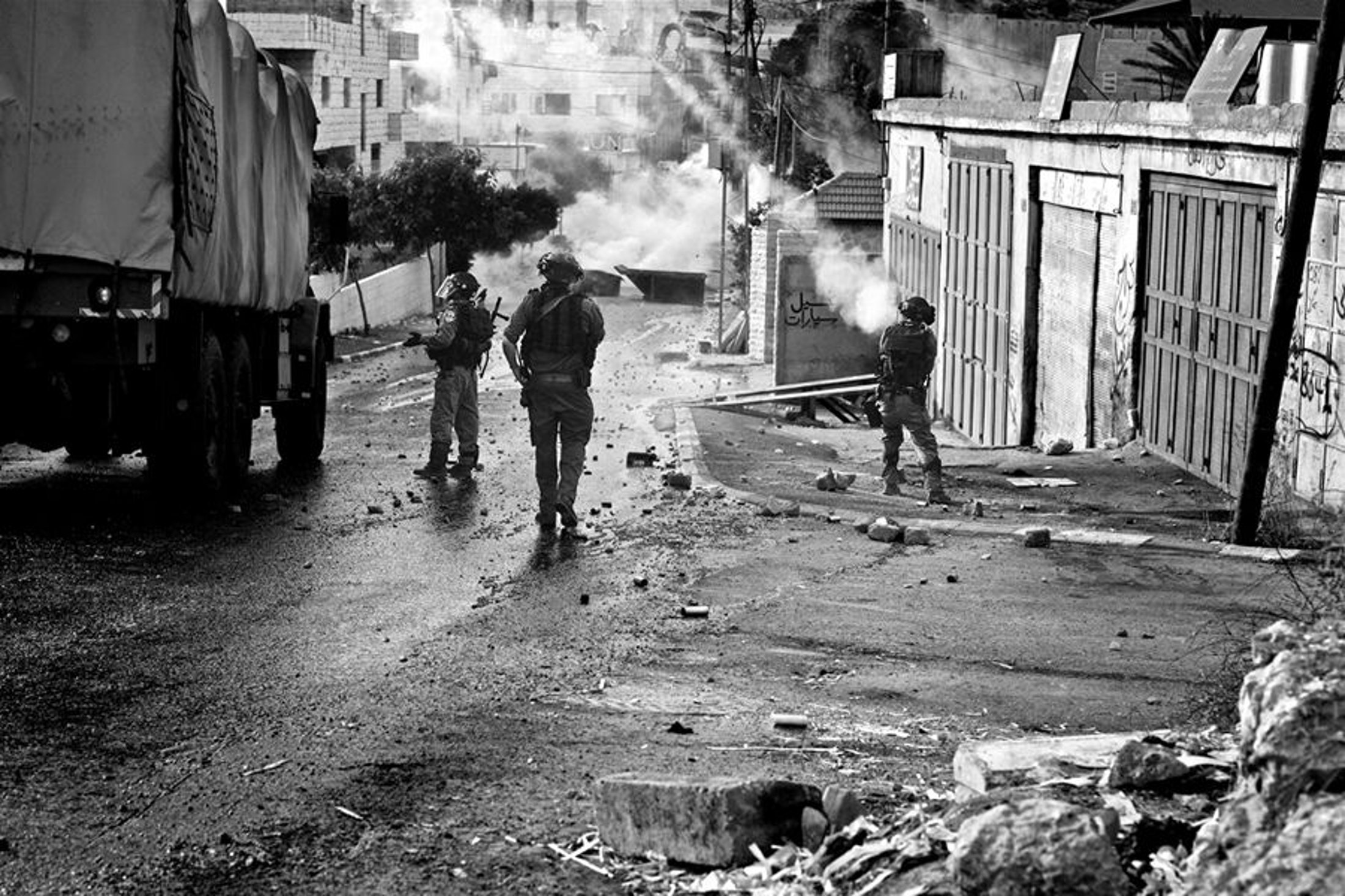 Clashes between residents and soldiers lasted for several days with the soldiers using tear gas, rubber bullets, stun grenades and live rounds on the residents of the camp, who had only rocks as weapons. Palestinian press covered the events equipped with helmets, gas masks, body armor and zoom lenses.