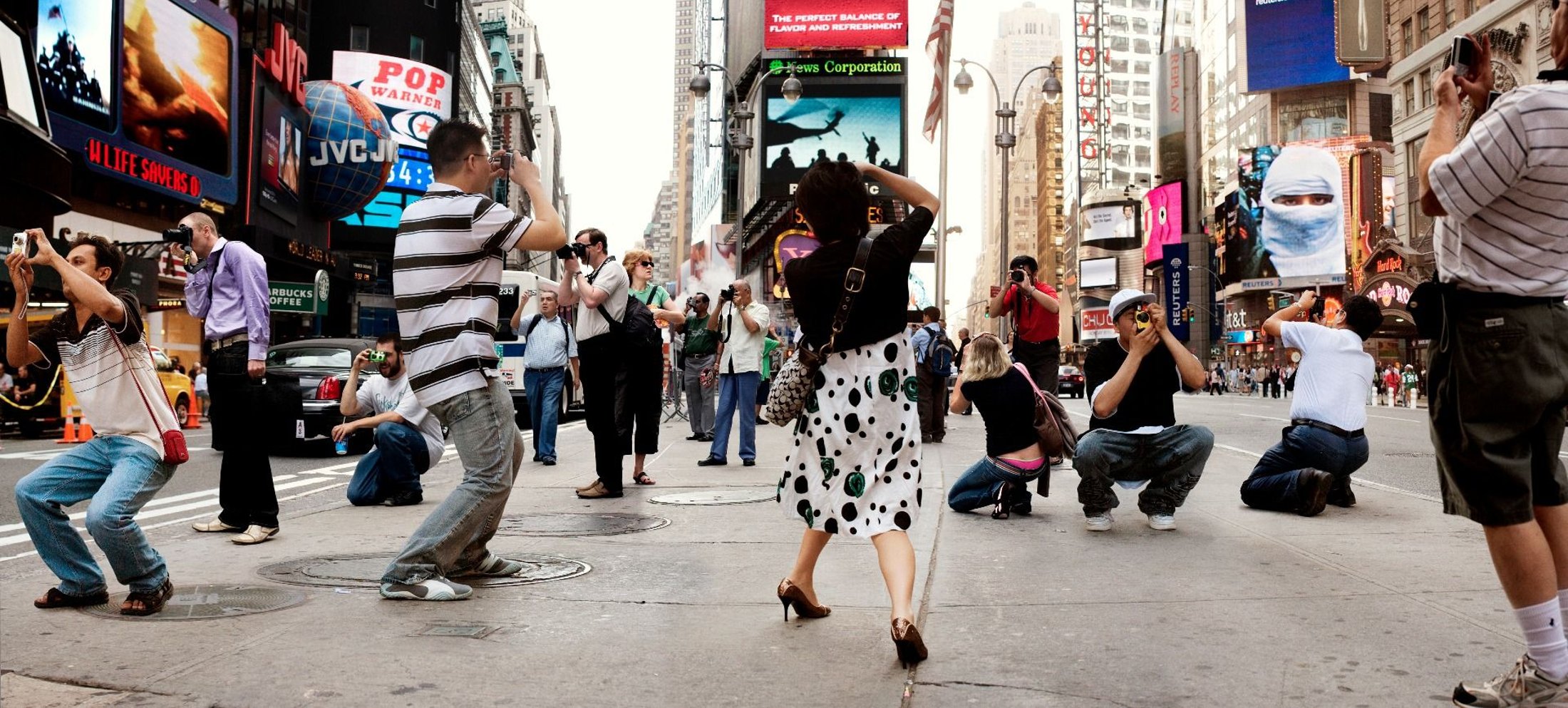 Shizuka Yokomizo, for instance, dropped invitations into the letterboxes of strangers, asking for their participation by standing in their window at a specified time when she would be outside on the street waiting to photograph them. Melanie Manicot asked members of the public to stand informally as a group and look at the camera, while Mohamed Bourouissa, almost like a film director, stages “performances” using actors, props and controlled lighting to create mises en scène. Matt Stuart, on the other hand, waits for the subject to appear, never moving or altering anything when it does—even if this means lying at curb level for half an hour until a pigeon steps by in tandem with pedestrians. Different again is Massimo Vitali who stays upright, perched with his large-format 11x14 Deardorff on custom-made platforms (reaching up to 9 meters high), capturing panoramas of life in public places.