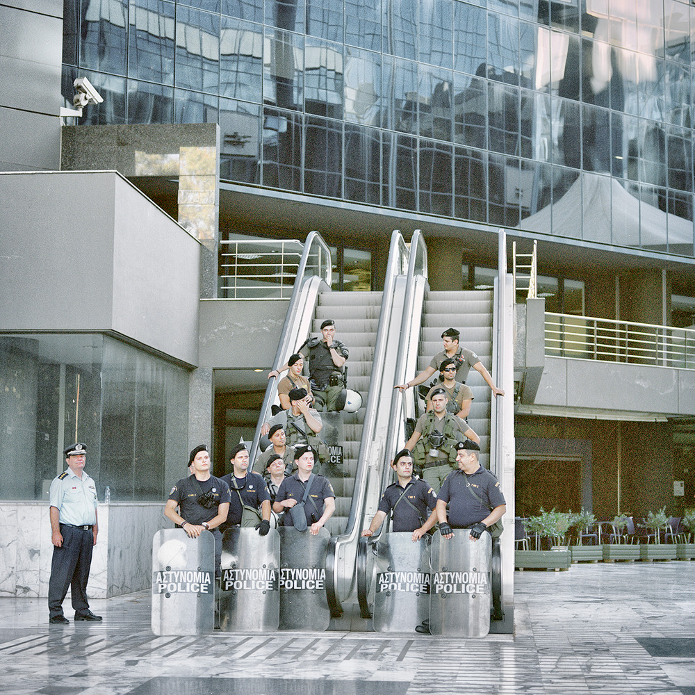 Beyond photography, it should also be noted that Karpouzis’ artistic output includes his work as a filmmaker and a published collection of poetry. Thus, one more key reference for understanding the project’s distinctive palette and subtle tone is the Greek director Theo Angelopoulos. Over his long career, Angelopoulos was revered for his contemplative eye and long, long tracking shots. Whereas a standard feature-length film today might be produced with a thousand takes, or even several thousand, Angelopoulos made entire movies using under one hundred. His fastidious care was evident in the resulting films. In the words of one critic, Fredric Jameson, “the temporal continuity of [his] long take…envelops, includes and exhausts” the subject at hand. I think of Jameson’s words and Angelopoloulos’ films in relation to Karpouzis’ images of Athens in crisis, as well as when I look back at the enveloping quality of the last 18 months of my own life. Yet in both cases, I find hope by thinking of this sustained focus not as exhausting but rather a precious chance for contemplation in an oft-harried world.