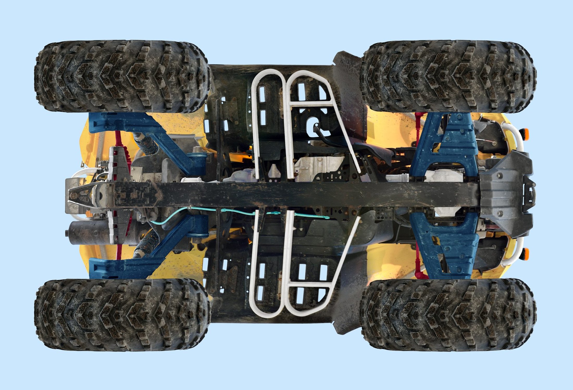 But most unusually, I photograph my subject from an odd point of view: from the asphalt. When viewed from below, the machines come to resemble huge insects. The complex tangle of powertrains looks like the organs of a living creature.