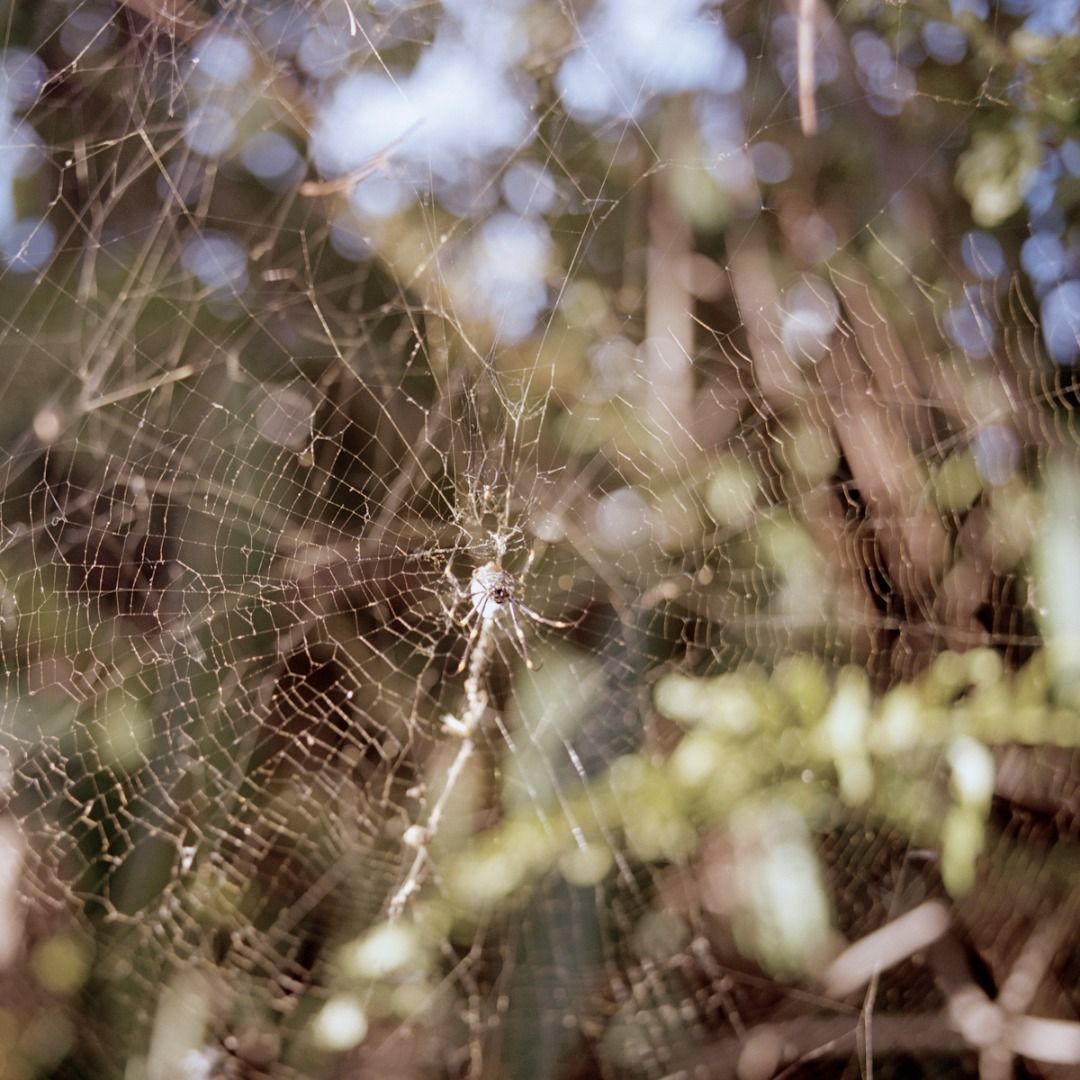 Wind starts to blow more violently. View of tops of TREES as they shake in fast motion back and forth. Sound of a FLY buzzing very close by over the howling wind. Sound of a BABY begins to cry in the distance. A huge HUNTSMAN SPIDER moves in the wind. Sound of CROWS overhead.