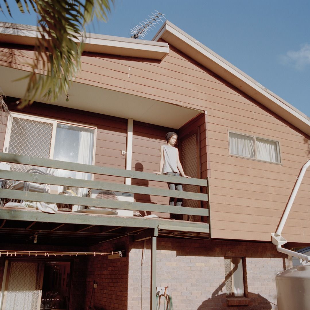 Wind picks up, ruffling the foliage and white curtains in an open window. Innocuous UTILITY VEHICLE is parked in the driveway. HELICOPTER sounds still overhead, loud and grating.