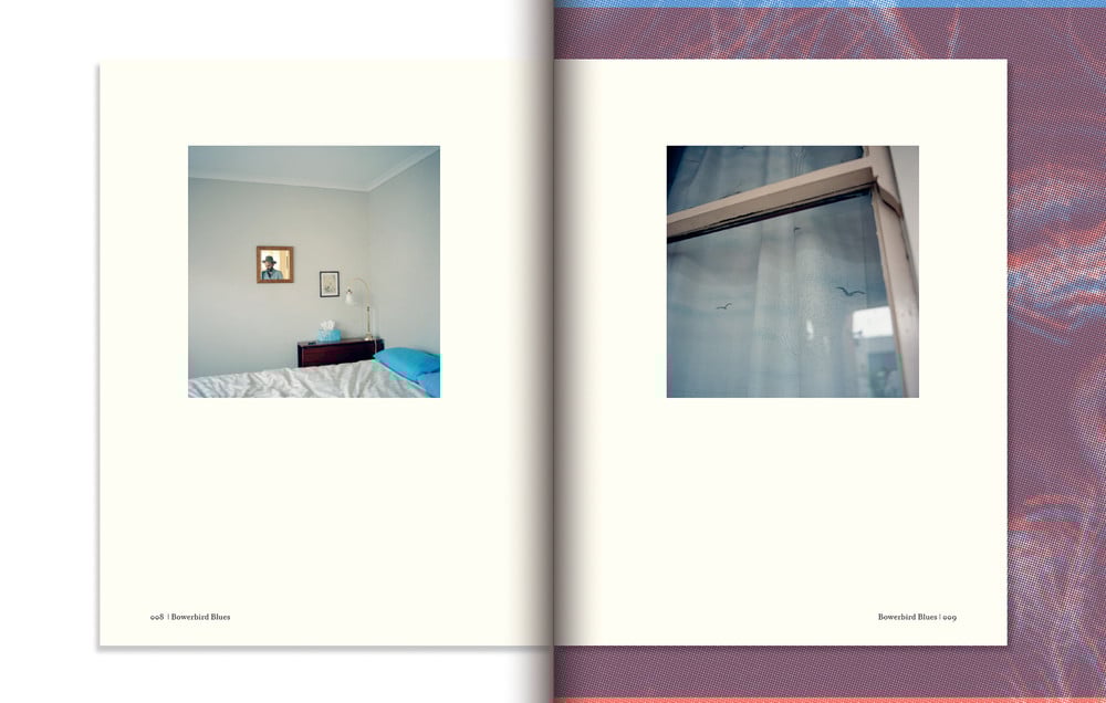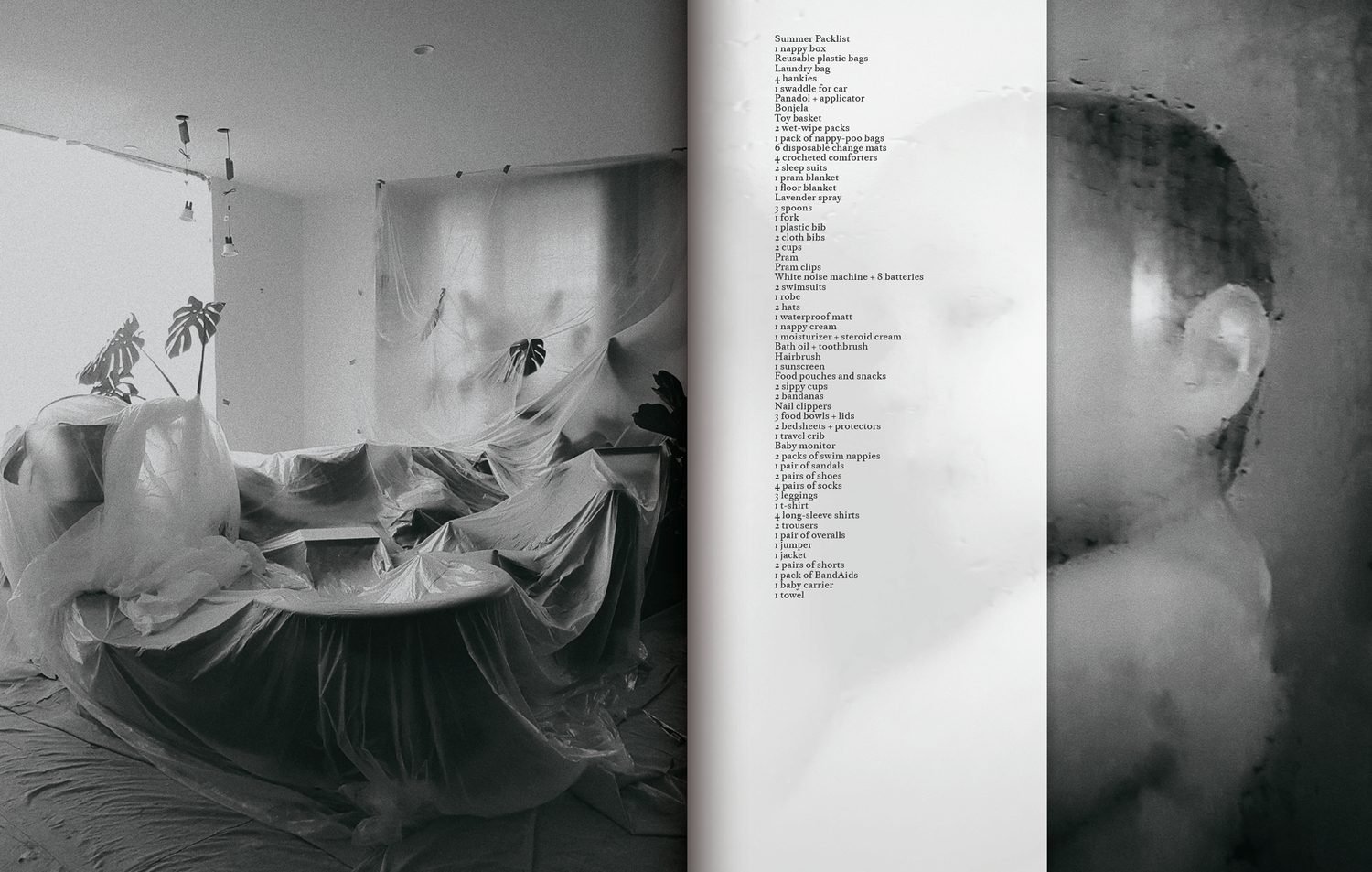 The book opens with a smaller booklet bound to the front of the large book block—this zine-like introduction of 24 pages or so takes the original working title Bowerbird Blues. The timeframe covered in this visual introduction is seemingly the months leading up to and during Ang’s pregnancy. The images in this short opening focus on her partner predominantly, but also on empty spaces—as the title suggests, spaces being prepared for an imminent arrival. There is a simplicity to this opening stanza that isn’t replicated elsewhere in the book, the pages provide space for the images to breathe, and there is a gentle, slow and meditative nature to the layout of this section.