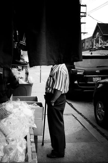 While street photography is often used to document "life as it is," I often reject this pursuit and use the streets as a canvas to capture and create my own view of the world and of art. Usually, this comes in the form of using the camera or the frame to "abstract" my subject(s). The abstractions, at least to me, lead to a more interesting method of storytelling than pure documentary.