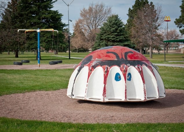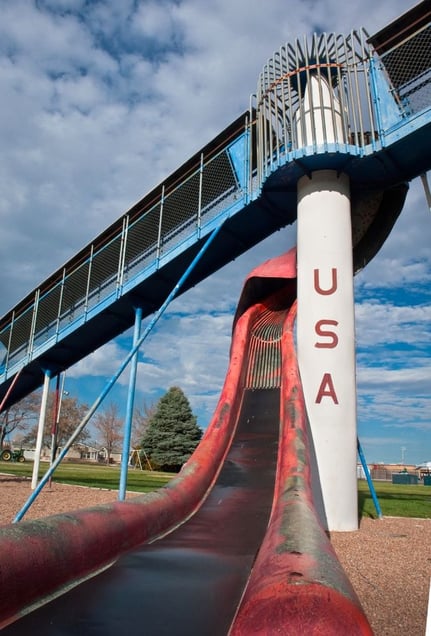 Playgrounds first became popular in the U.S. in the early 1900s as part of the Reform Movement's efforts to keep city kids from playing in dangerous streets. Eventually, they evolved into a new type of community gathering place. But the structures that defined those spaces -- towering metal slides, spine-jarring seesaws, expansive climbing gyms -- are now being hauled off to the scrap yard as schools and towns renovate their playgrounds. When I took my own kids to local playgrounds and realized the loss, I decided to document as many of these remaining icons of childhood as I could.
