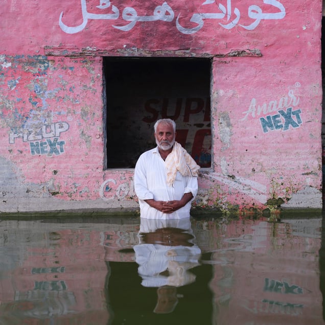 Amjad Ali Laghari, Goth Bawal Khan village, Sindh Province, Pakistan, September 2022. From the series Drowning World © Gideon Mendel.JPG