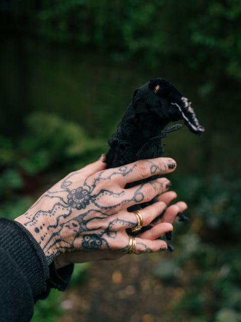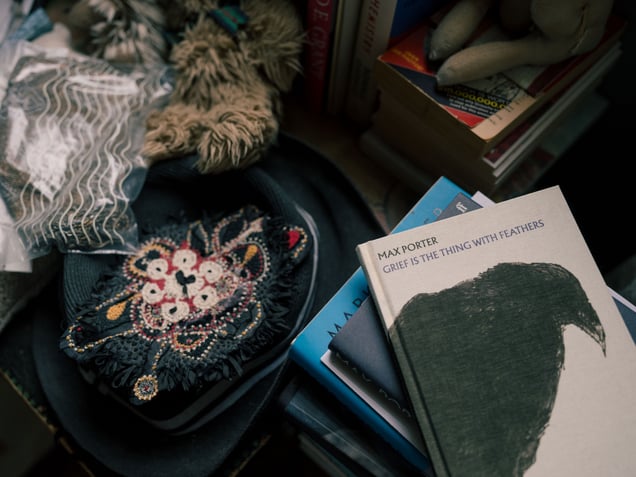 Carey’s fascination with birds, particularly crows, ties into Emily Dickinson’s poem “Hope” is the thing with feathers.