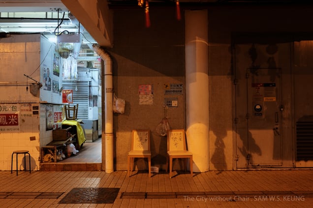 The artist examines the essence of Hong Kong by capturing abandoned chairs scattered across various districts. These chairs often go unnoticed, blending into the urban landscape as we’ve grown accustomed to their presence. Why can’t people pause for a moment? Is it due to the narrow streets? The relentless pace of life? Or simply the absence of chairs in the city?