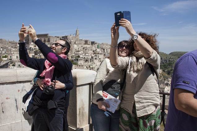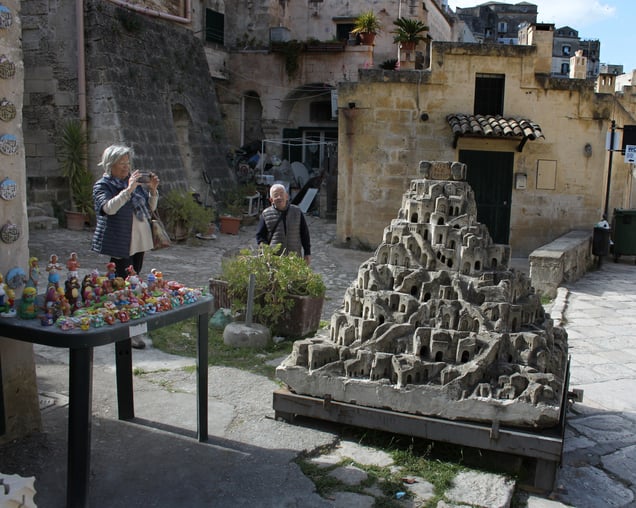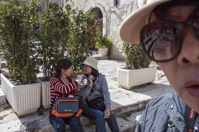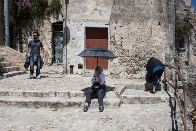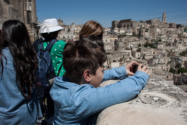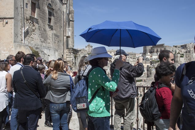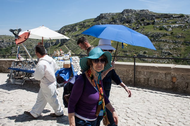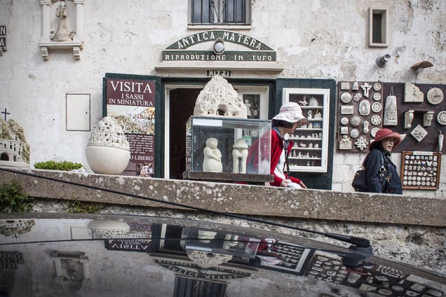 Carla Cantore's perspective is attentive and informed regarding the extremely significant social and cultural phenomenon of Matera 2019. This marvelous southern city, as the photographer and Matera native rightly observes, was rarely included on national tourist itineraries before being awarded the title of European Capital of Culture. Now, it has become a must-see destination for an often invasive and massive tourism. This has led to a radical transformation of the urban landscape, which, in a very short time, has taken on a new look, populated with souvenir shops, local craft shops, and restaurants and bars offering appealing tourist menus. Carla Cantore recounts all this in her photographs. Her piercing gaze captures the dynamics of this invasion with irony and acuity. Her primary subject is not the tourist, but rather the sometimes stark contrast that greets them. From a certain perspective, this photographic sequence invites reflection on the pros and cons of so-called territorial marketing and its consequences. With a sincere and uninhibited gaze, Carla Cantore offers an inside look at the Basilicata capital, rediscovered only in recent years by European and national cultural policies, revealing a new side, hidden away from tourist and institutional communication.
