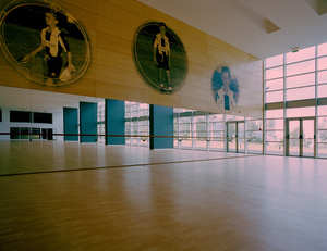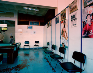 11: Photos of Cristiano Ronaldo are printed on the wooden walls of the gym of C.D. Nacional.