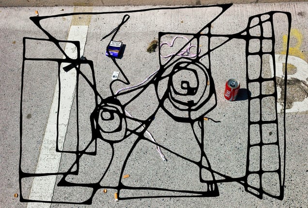 Ideas of visual sound and the choreography of the everyday are present within the project, both in subject matter and the actions of their making. The moment captured in the lens, the actions embodied in the drawing, the dust, threads, colours and syncopated shapes and props that inhabit the surfaces and spaces of the images. 'End.' is a figurative body of work - and that figure is as much the city, the fabric, the light, as the people that inhabit it. It is also the object of the publication of 'End.' itself, with its diptychs, leporello pages and unfolding sequences. The repetitions of movements, the loops of time and place that these figures find themselves caught up in, the labyrinth of Dublin, they are as much to do with Samuel Beckett and Pina Bausch as they are William Klein and Constant Nieuwenhuys.